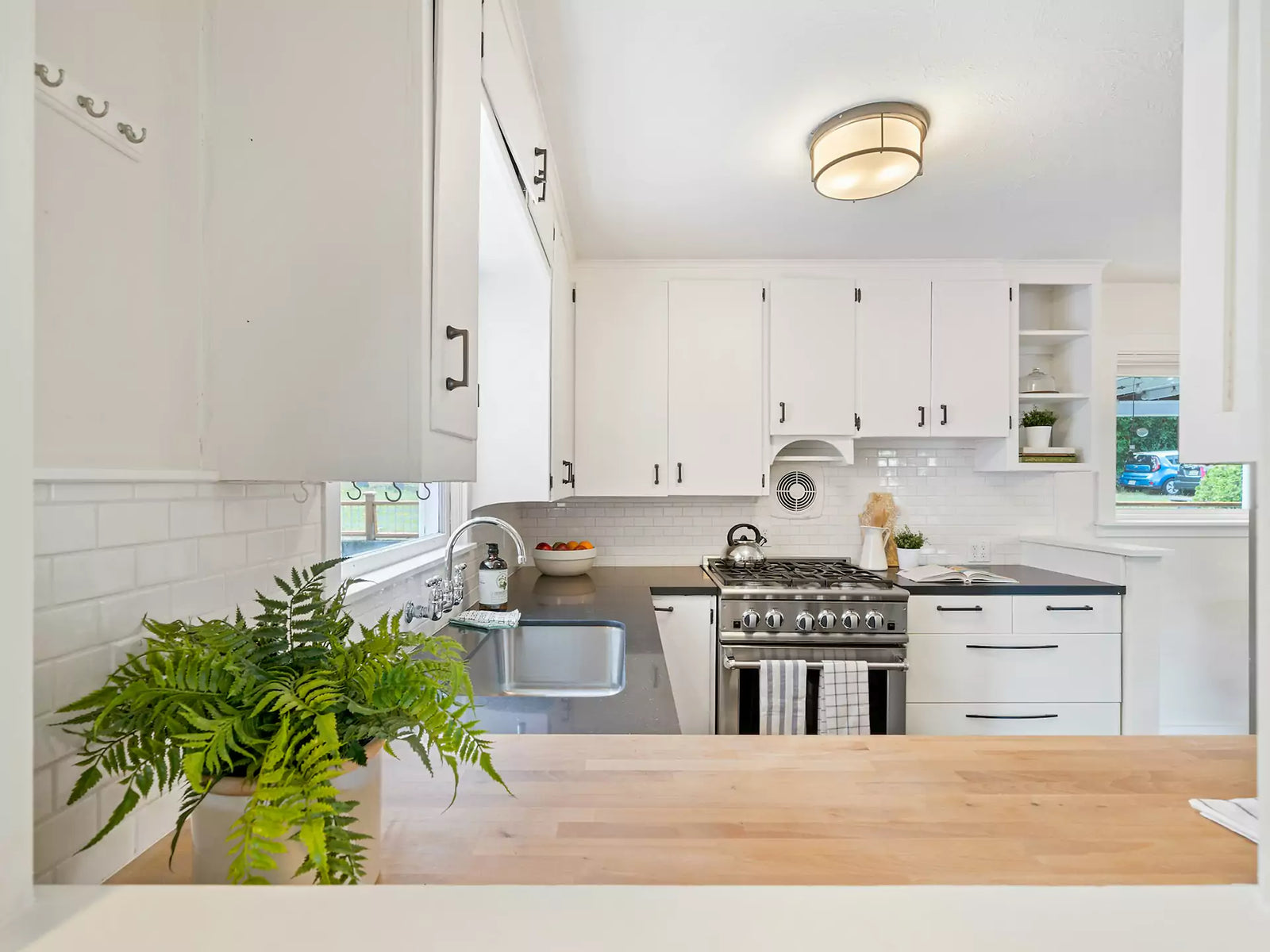 Tip: Use wood-accented flush mounts with other lights. This creates layers and makes your kitchen lighting more flexible.