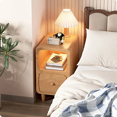 3 Tiers Narrow Square Oak Wood Open Storage Nightstand