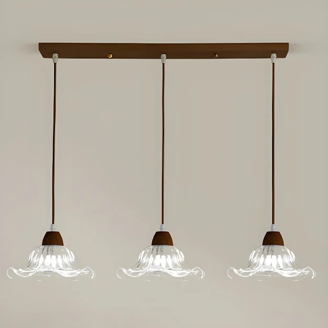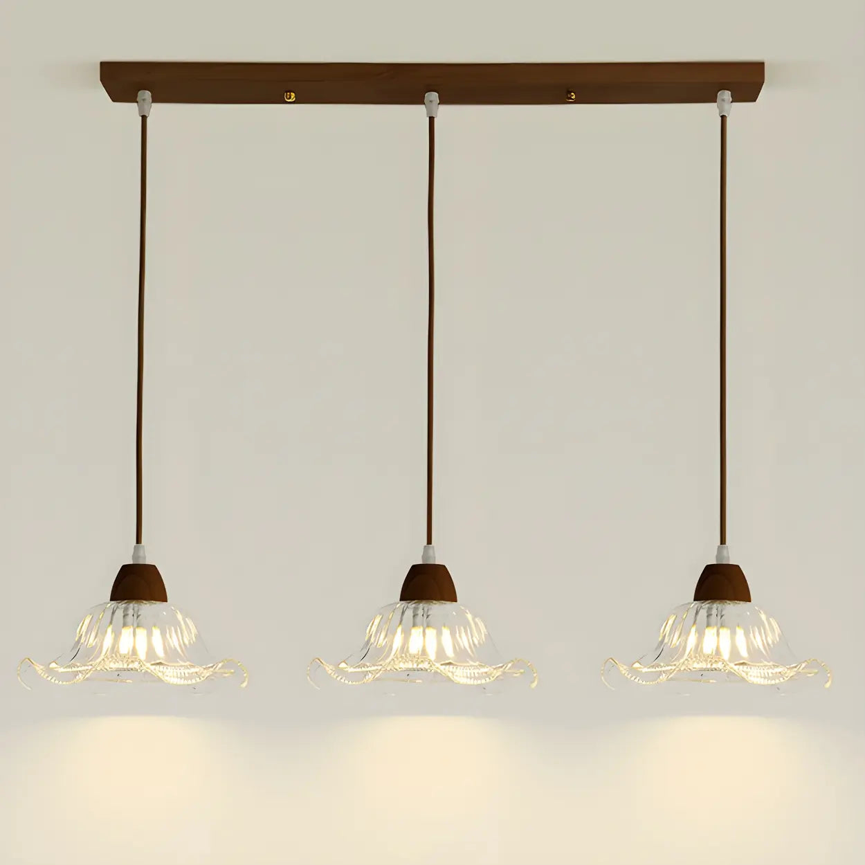 3-Light Vintage Floral Glass Wood Island Pendant Light - Walnut is backordered and will ship as soon as it is back in stock.