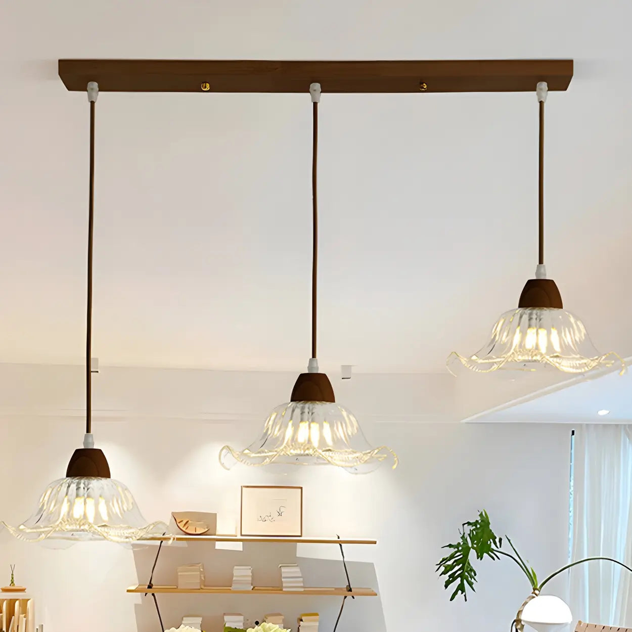 - Simple to install, this walnut island lamp is ideal for places such as kitchen islands or dining rooms.