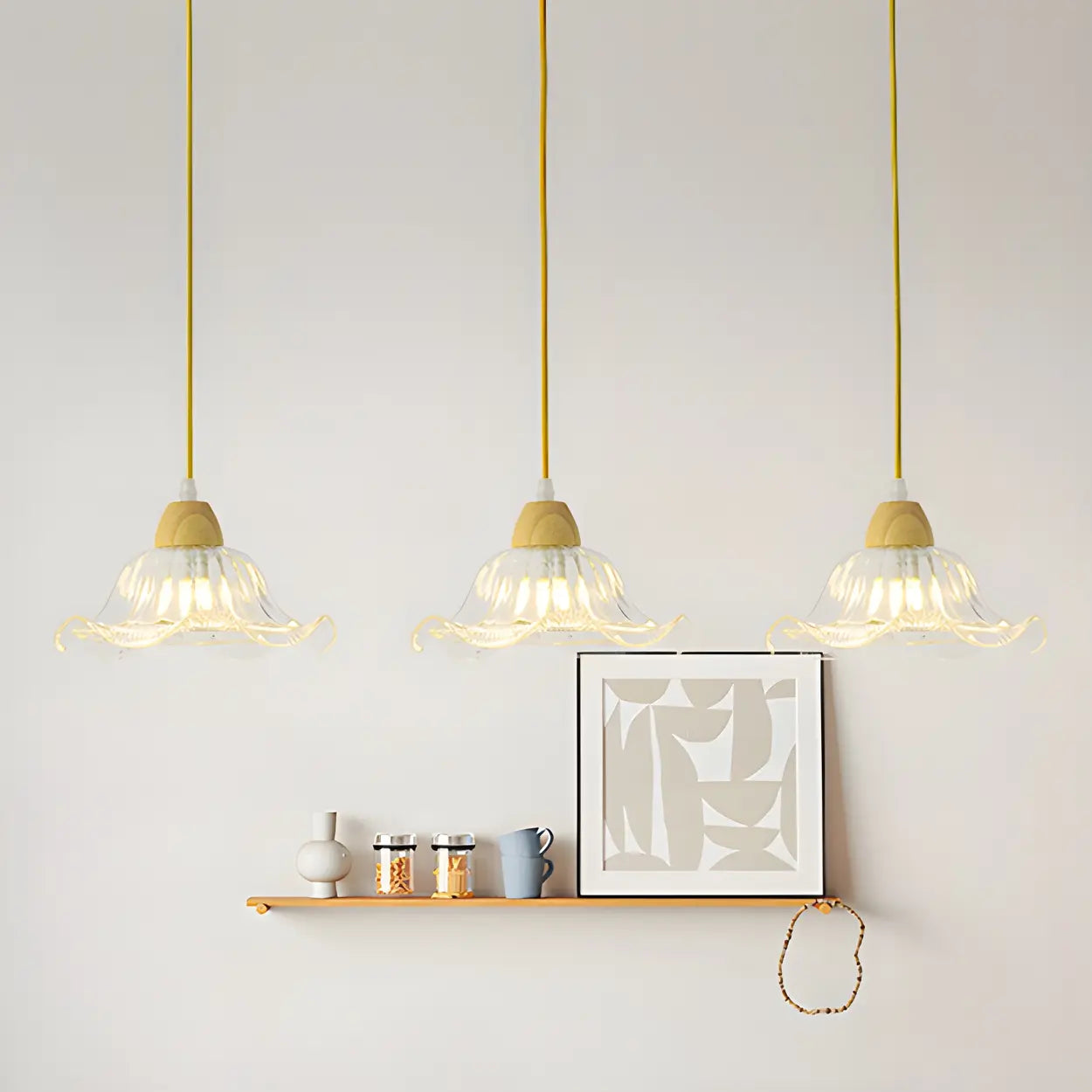 - Designed with a classic petal-shaped glass lampshade, it adds elegance to the space.