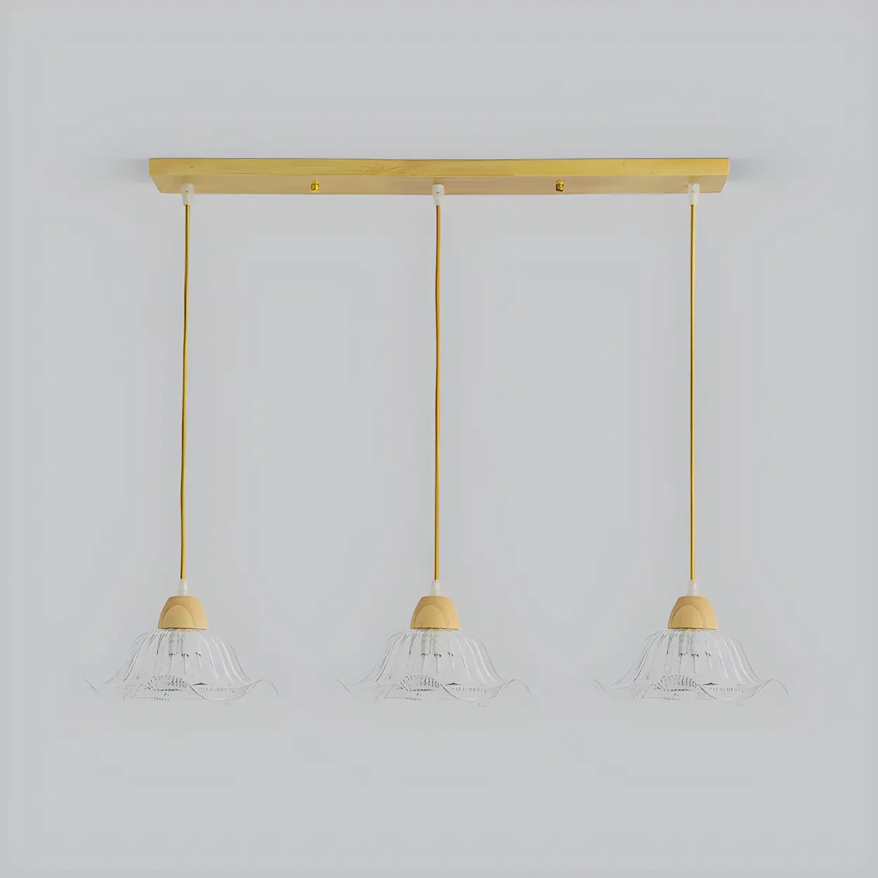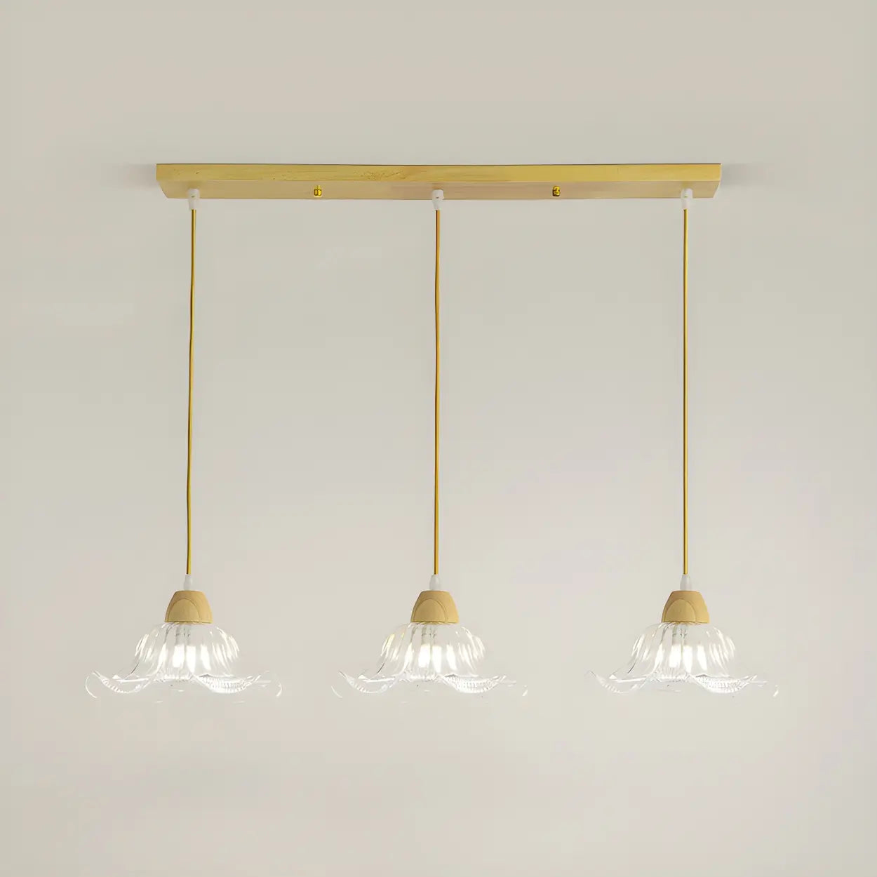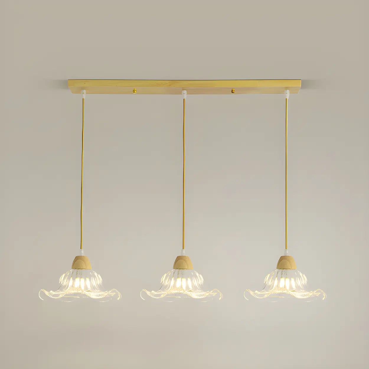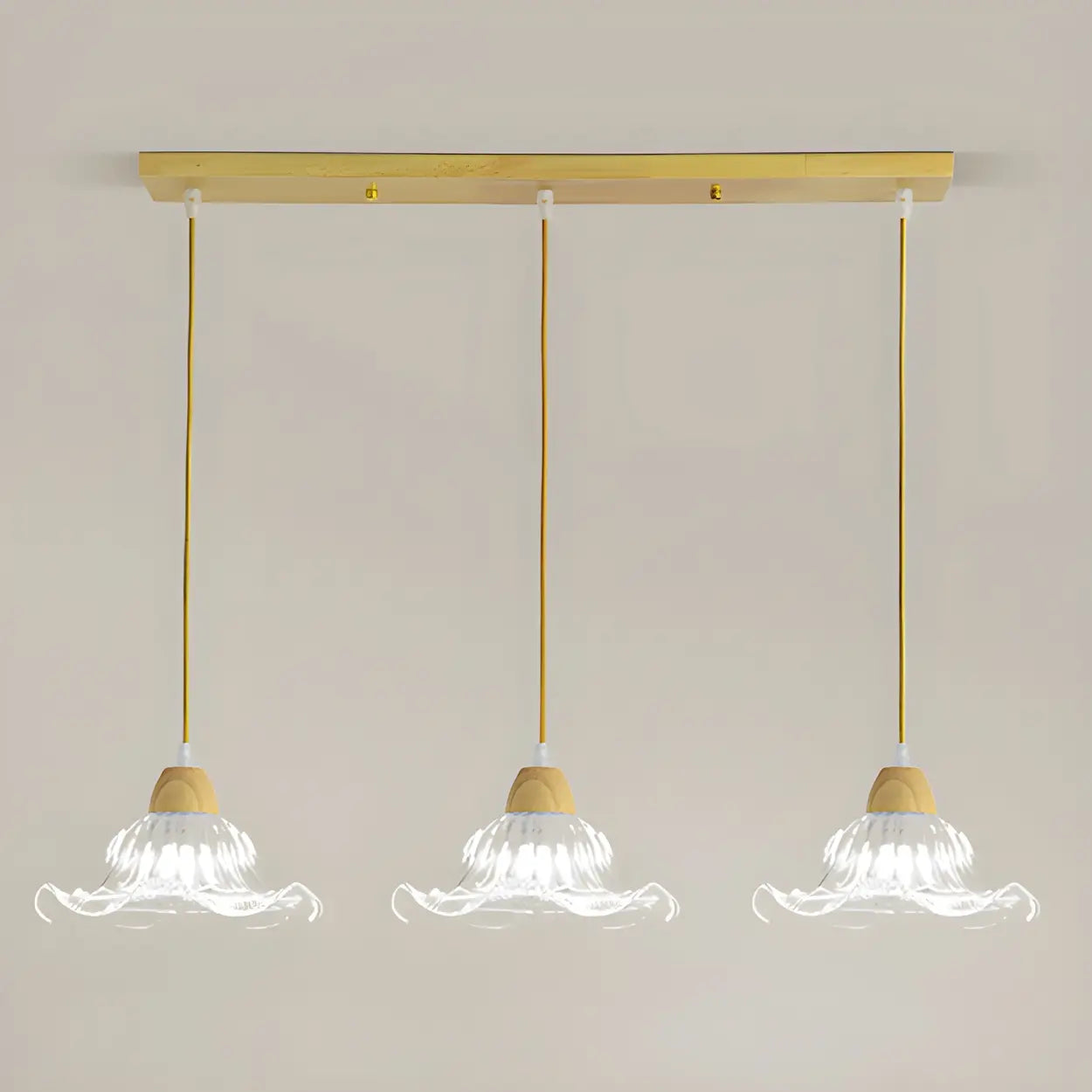 3-Light Vintage Floral Glass Wood Island Pendant Light