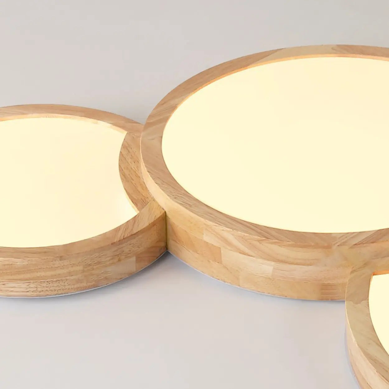 3 Lights Wood Round LED Flush Mount Light Living Room
