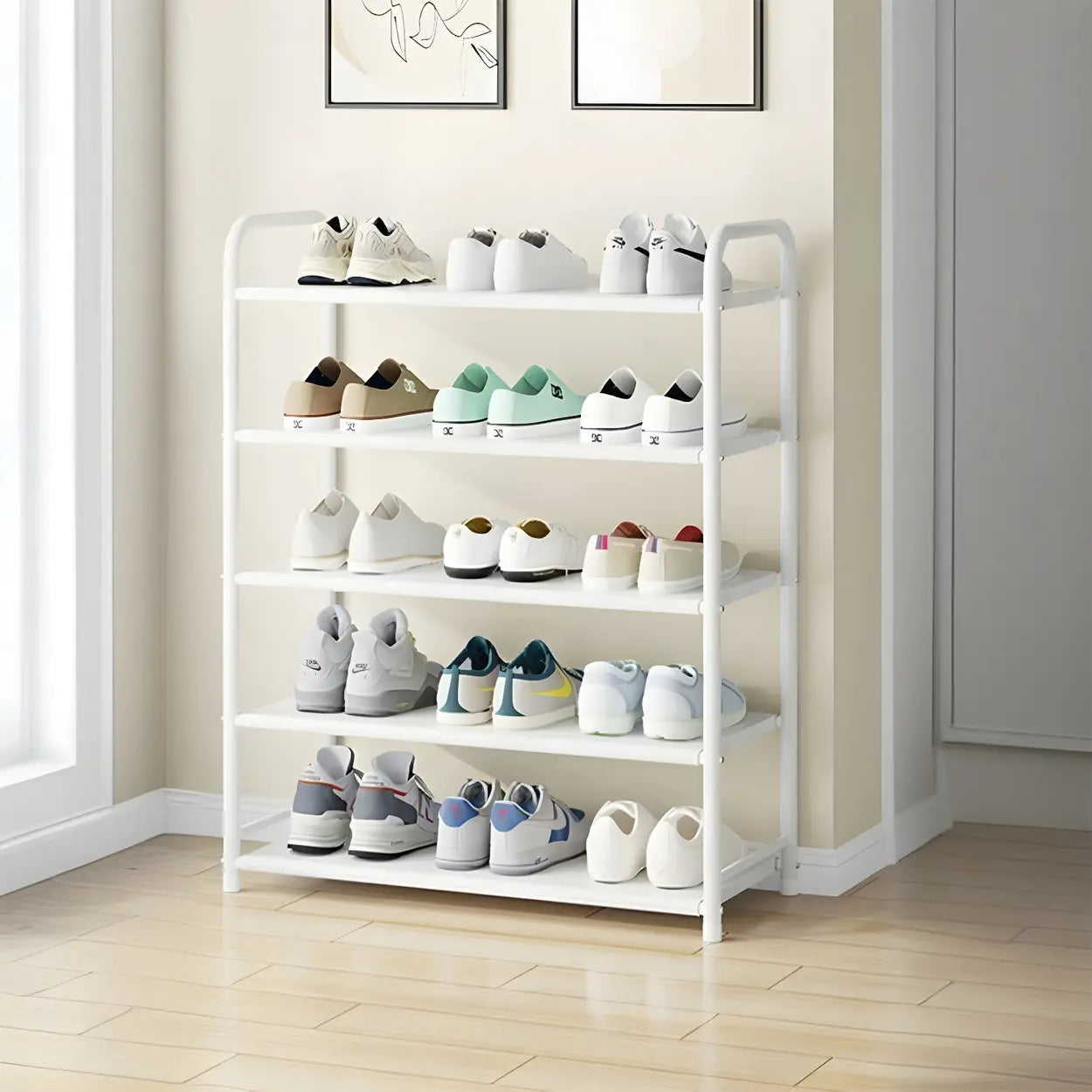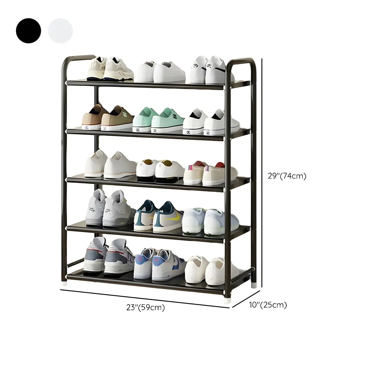 Giving the ultimate organizational solution, this sleek black metal shoe rack combines minimalist design with exceptional functionality. Adopting five spacious tiers, it maximizes vertical storage to neatly house multiple shoe pairs, eliminating clutter while preserving your floorspace. Effortless to assemble, it instantly elevates living rooms, entryways, or bedrooms.