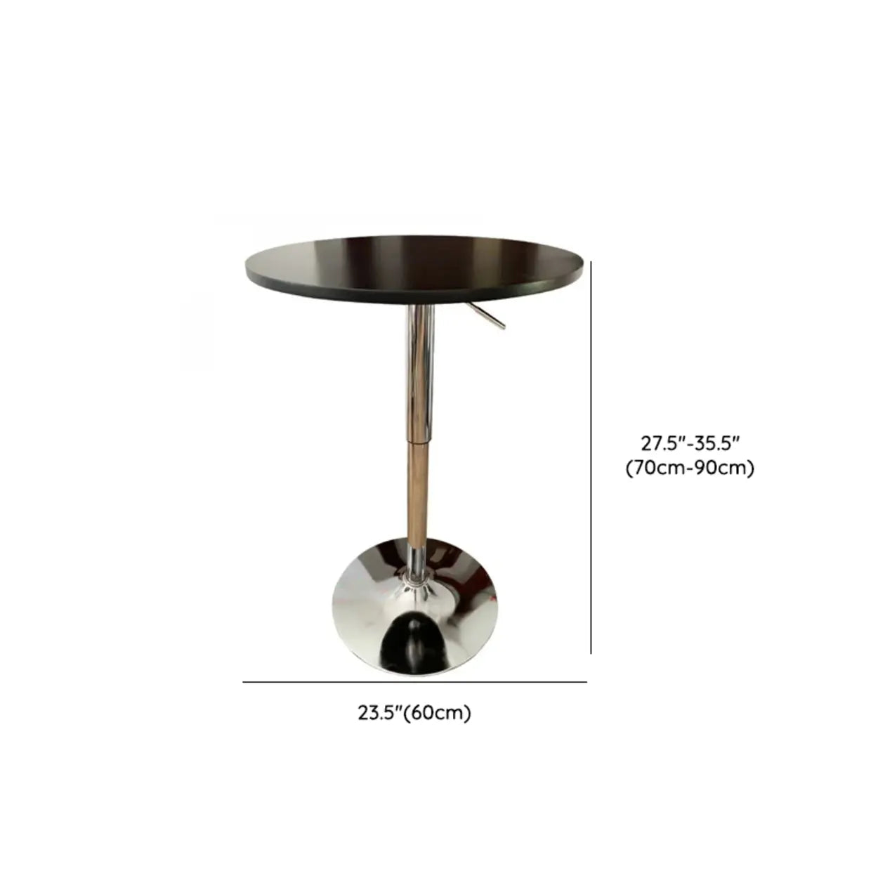 Adjustable Height Modern Round Bistro Bar Height Table - Black-Silver / 23.6"L x 23.6"W x 43.3"H / Table Only is backordered and will ship as soon as it is back in stock.