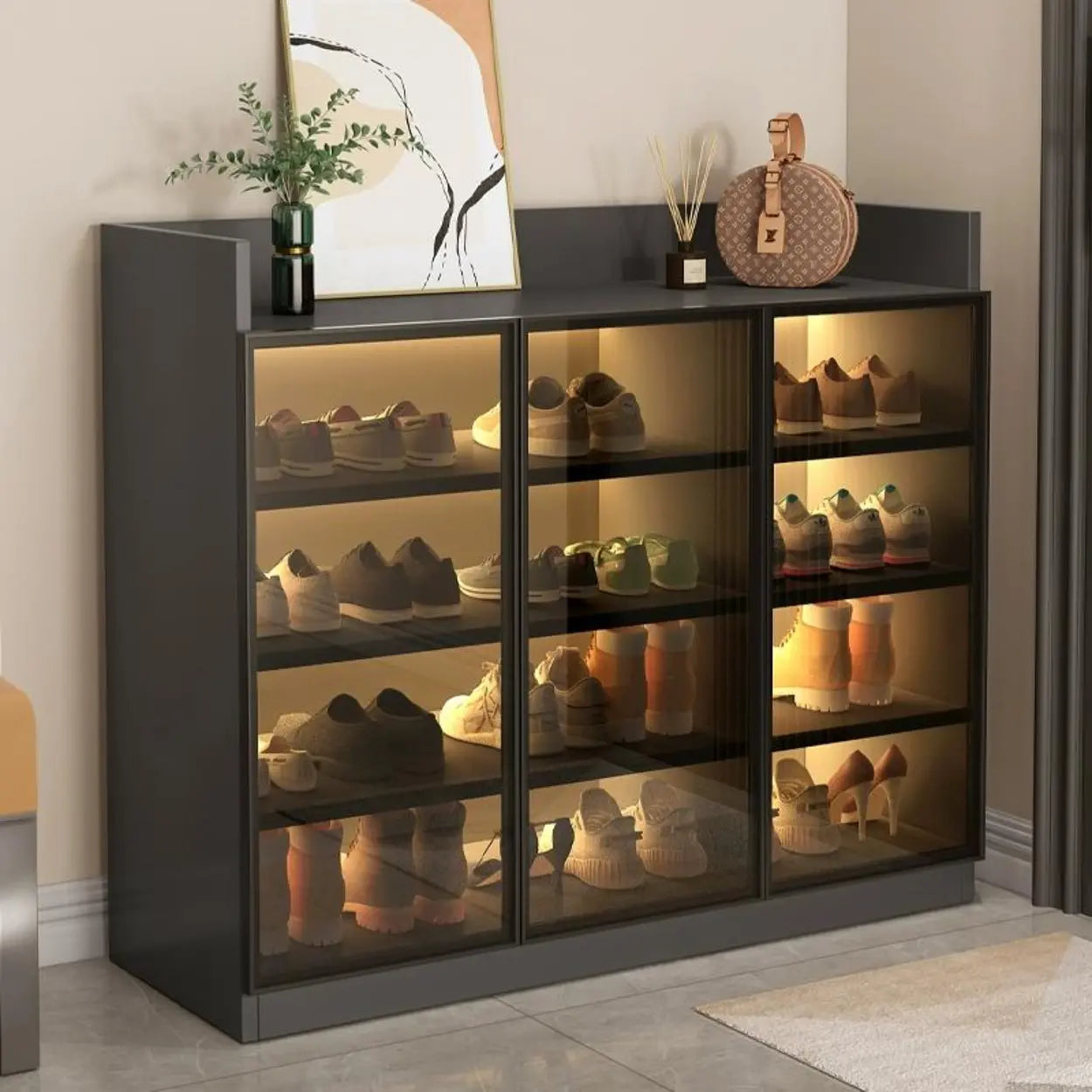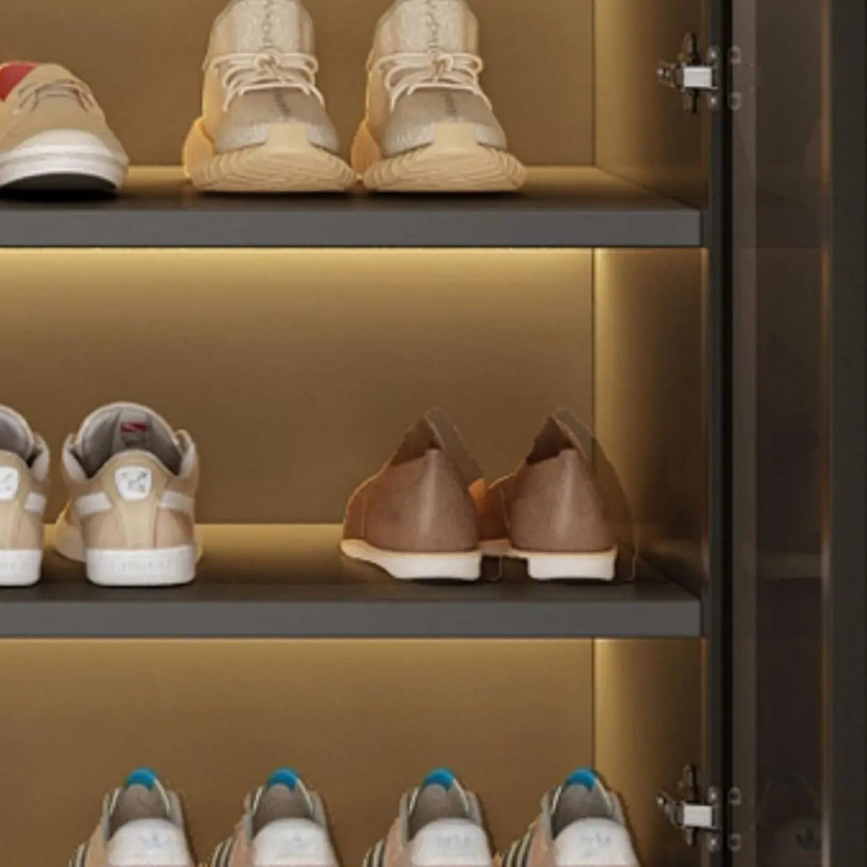 This shoe cabinet adopts a modern and simple design, which is very practical and beautiful. The high-quality glass door with internal LED lights gives a platform for your shoes to be displayed and enhances the decorative effect of the whole home. Its compact design is suitable for different home styles, saving you space while increasing the convenience of storage.