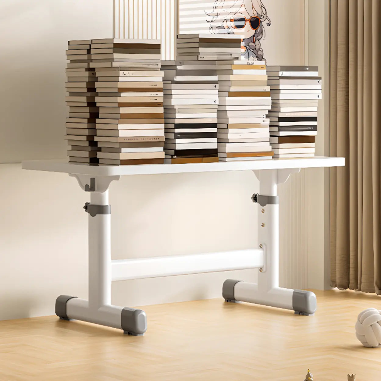 Adjustable White Wood Top Metal T-Shaped Base Kids Desk