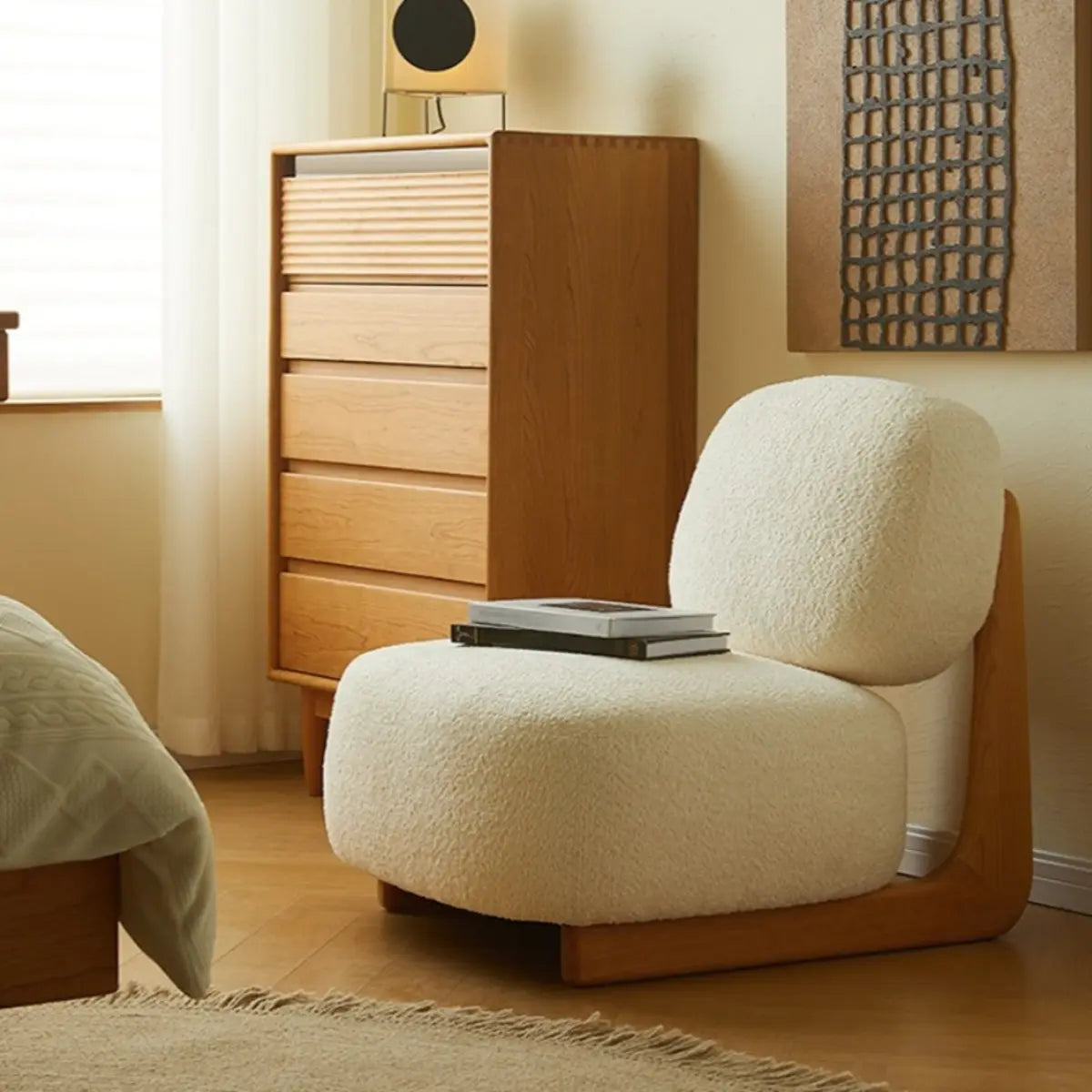 Solid cherry wood paired with soft alpaca wool fabric for durability and ultimate comfort.