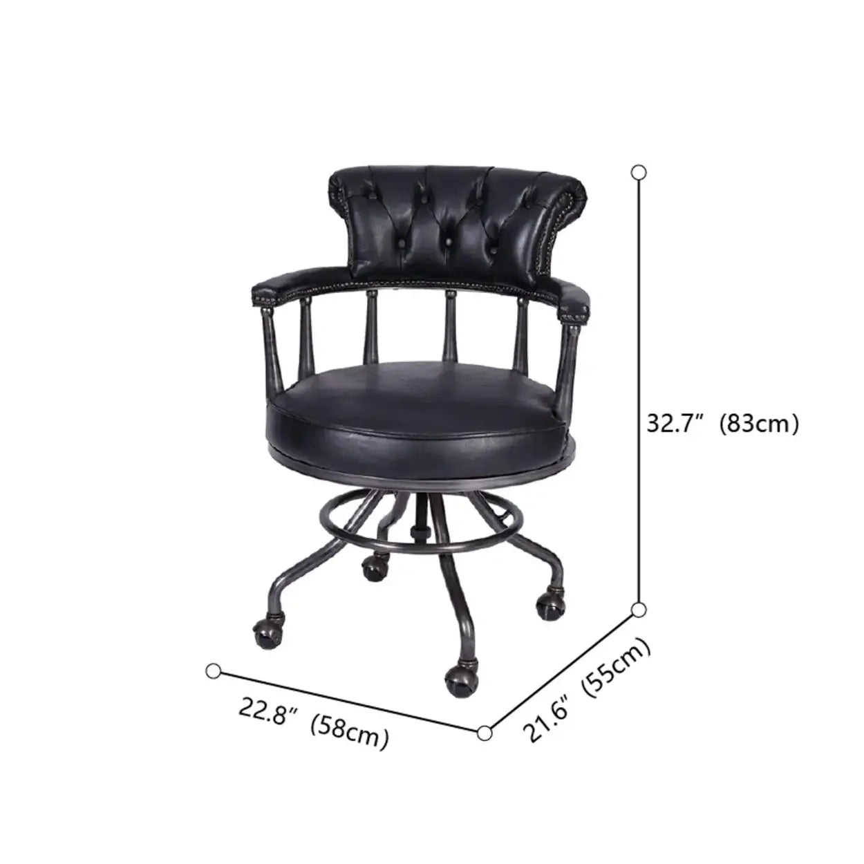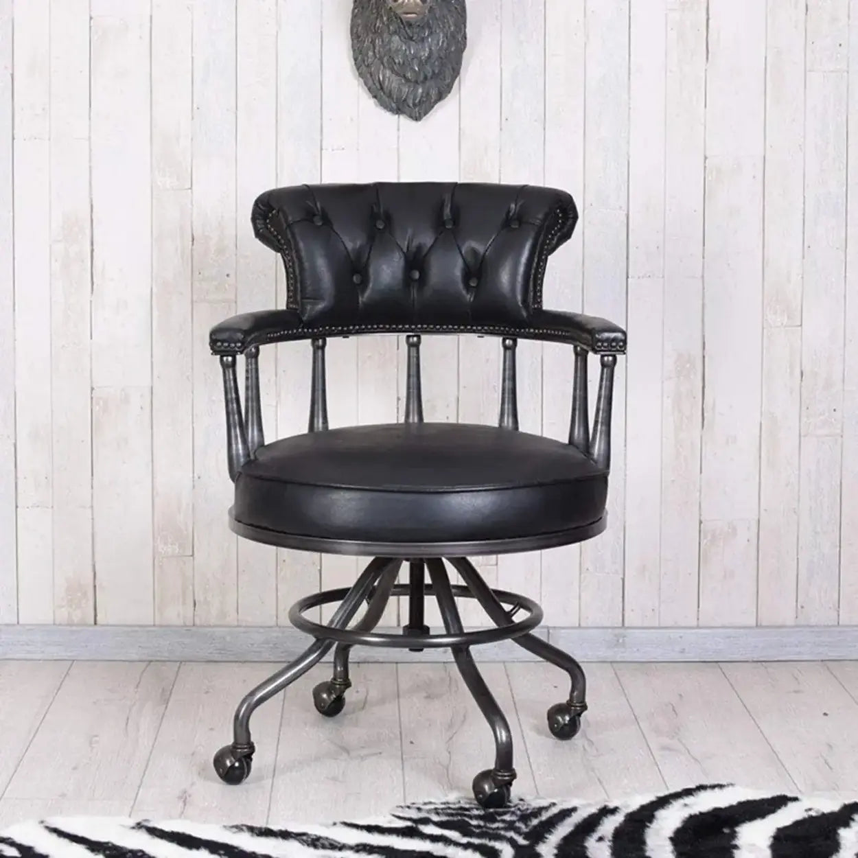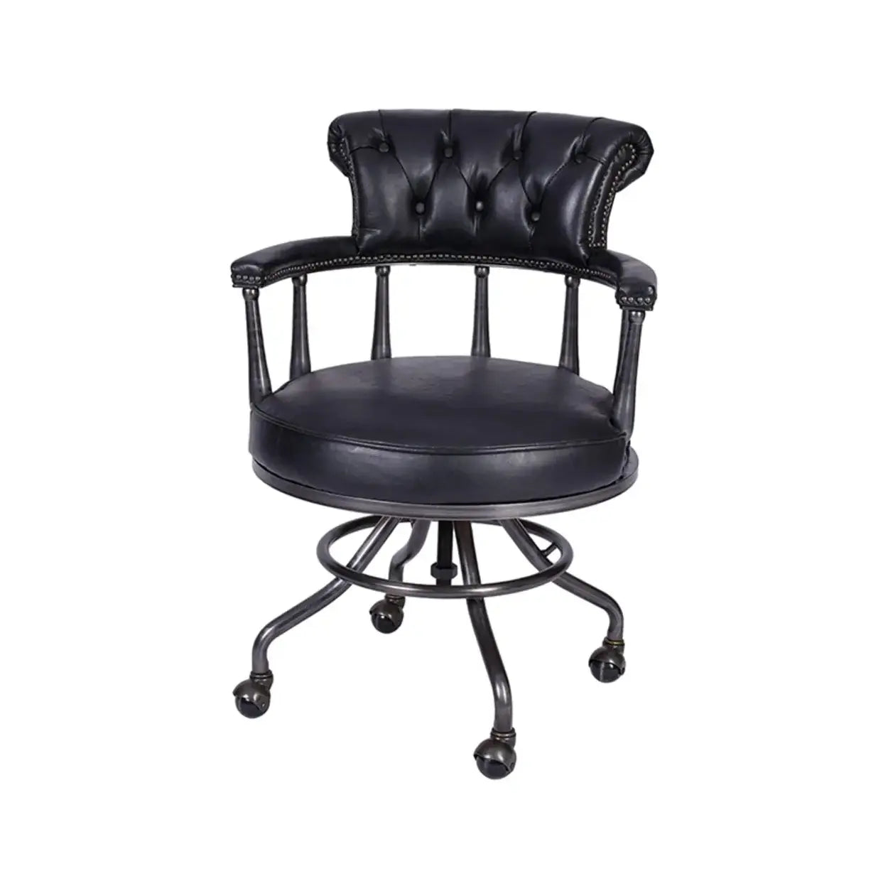 Antique Black Leather Chesterfield Office Chair with Casters