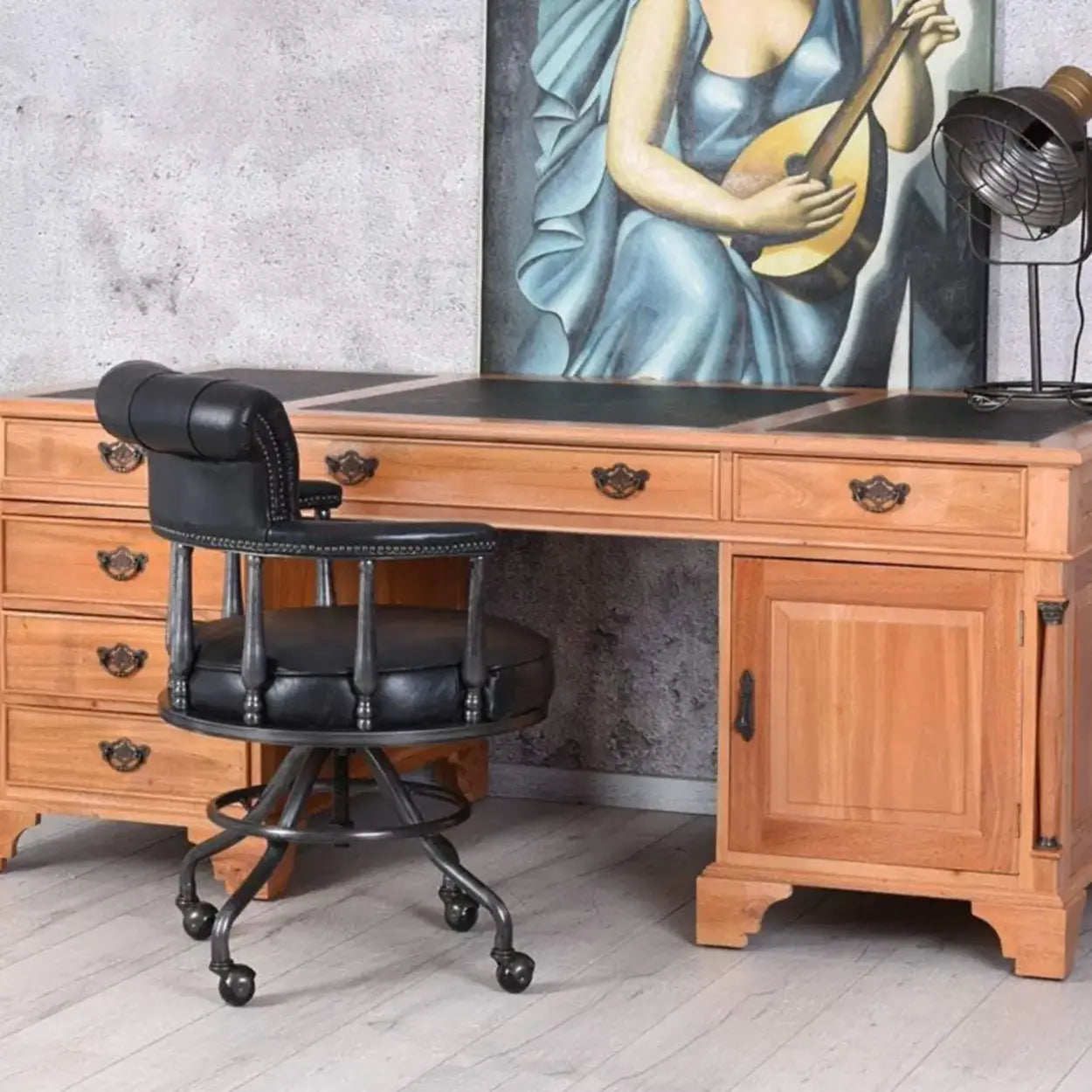 Bring classic charm and practical function to your workspace with this vintage-style swivel office chair. It combines deep-cushion comfort, durable construction, and easy mobility for daily tasks at your desk.
