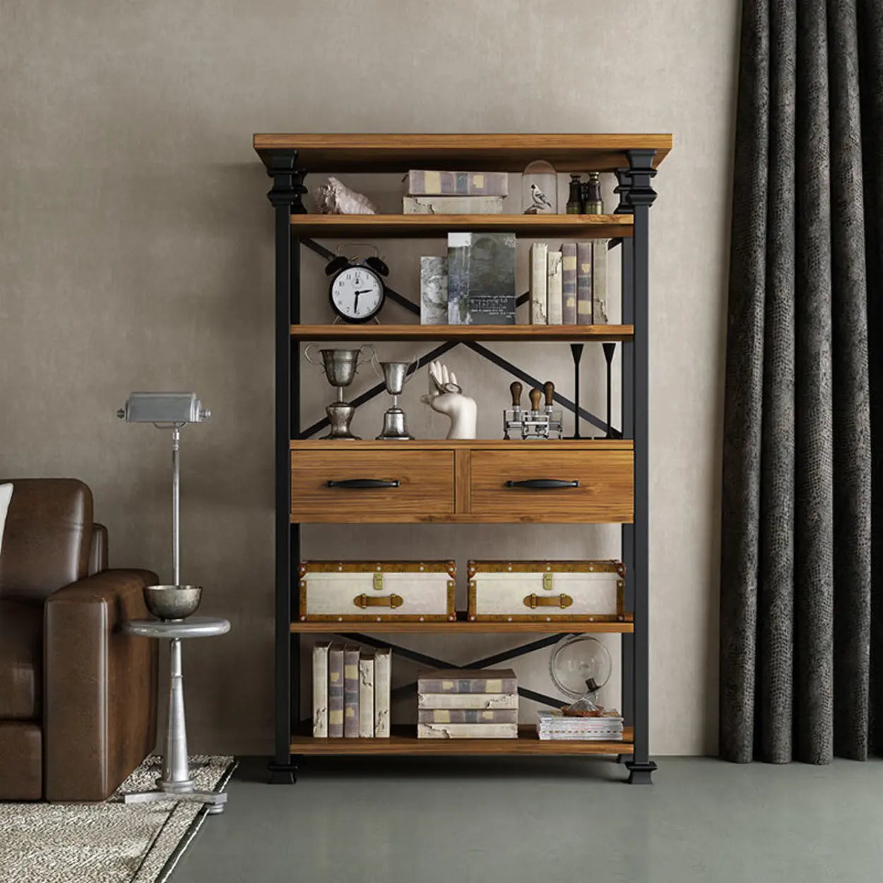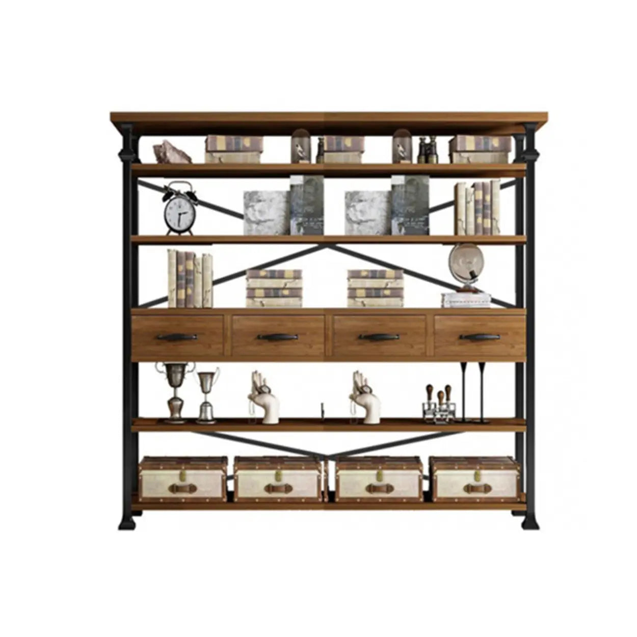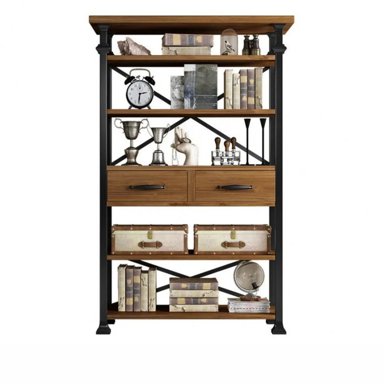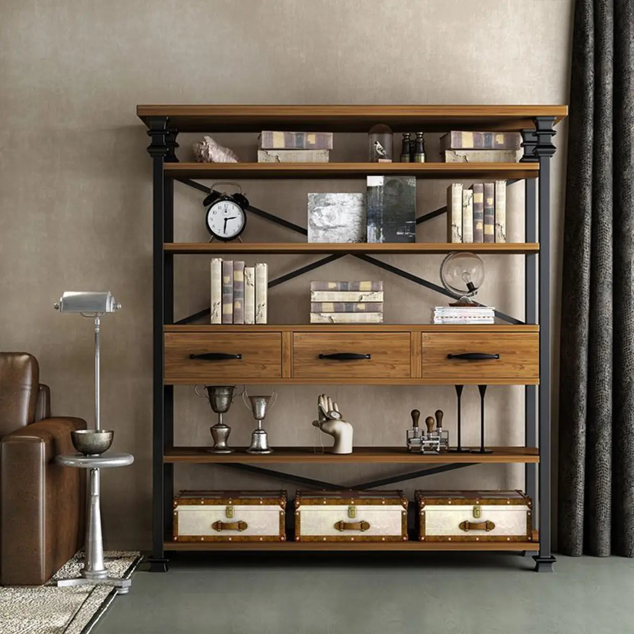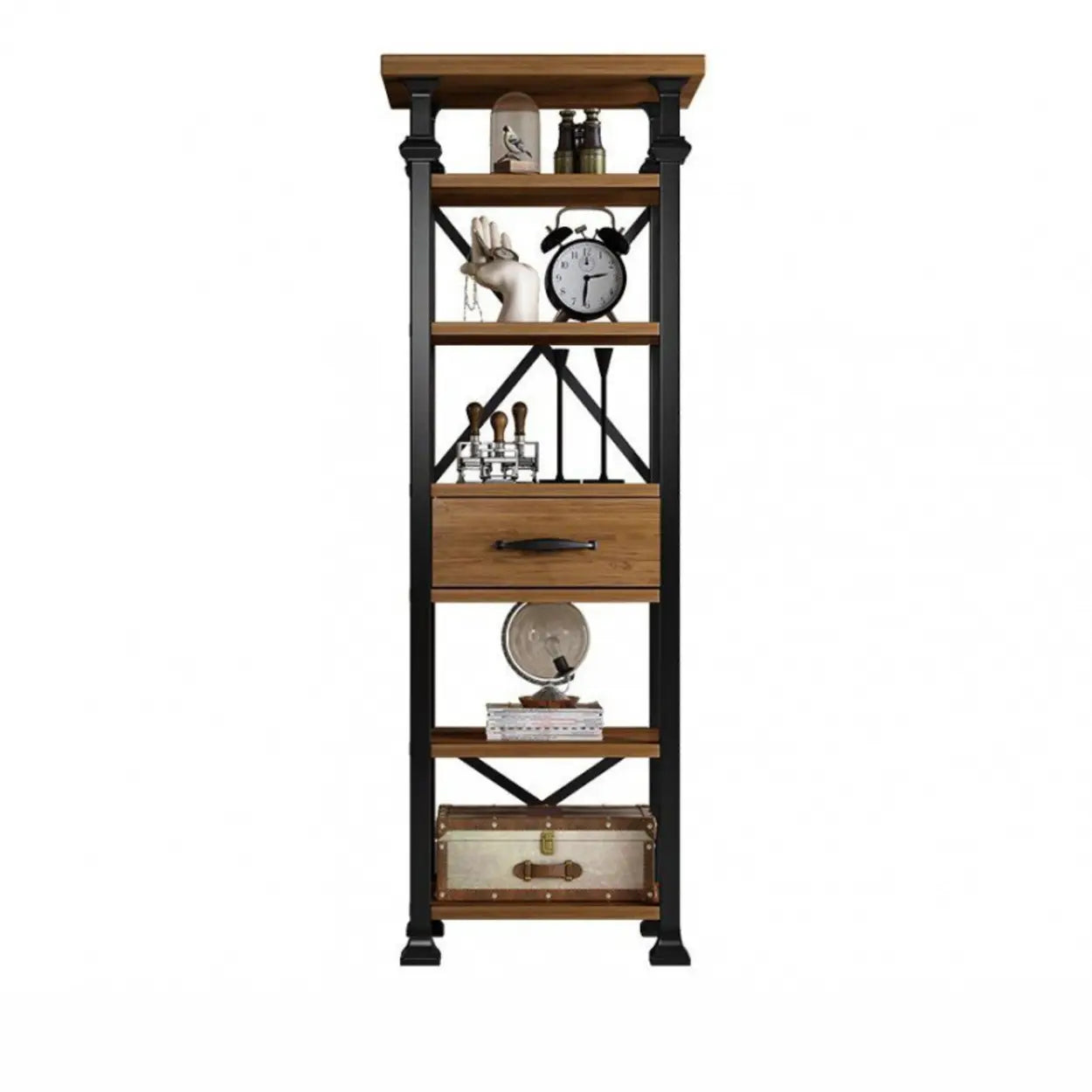This vertical open-shelf bookcase adopts a retro wood and metal structure design, showing a unique industrial style. Exquisite workmanship and high-quality materials ensure its durability, adding a touch of nostalgic fashion to your home space.