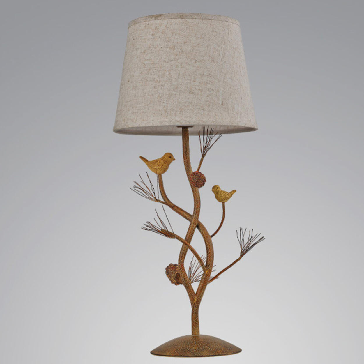 Branch and bird base create a natural, artistic style.