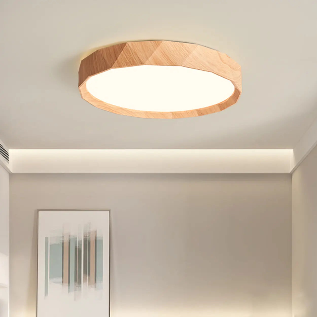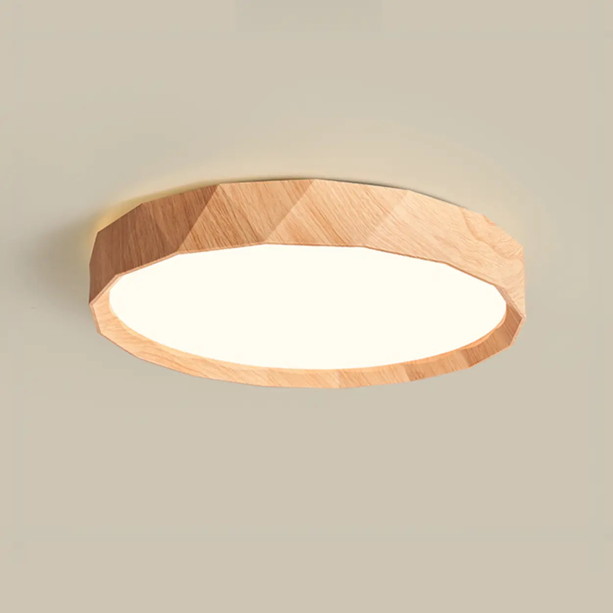 Bedroom Minimalist Round Wood LED Flush Mount Light