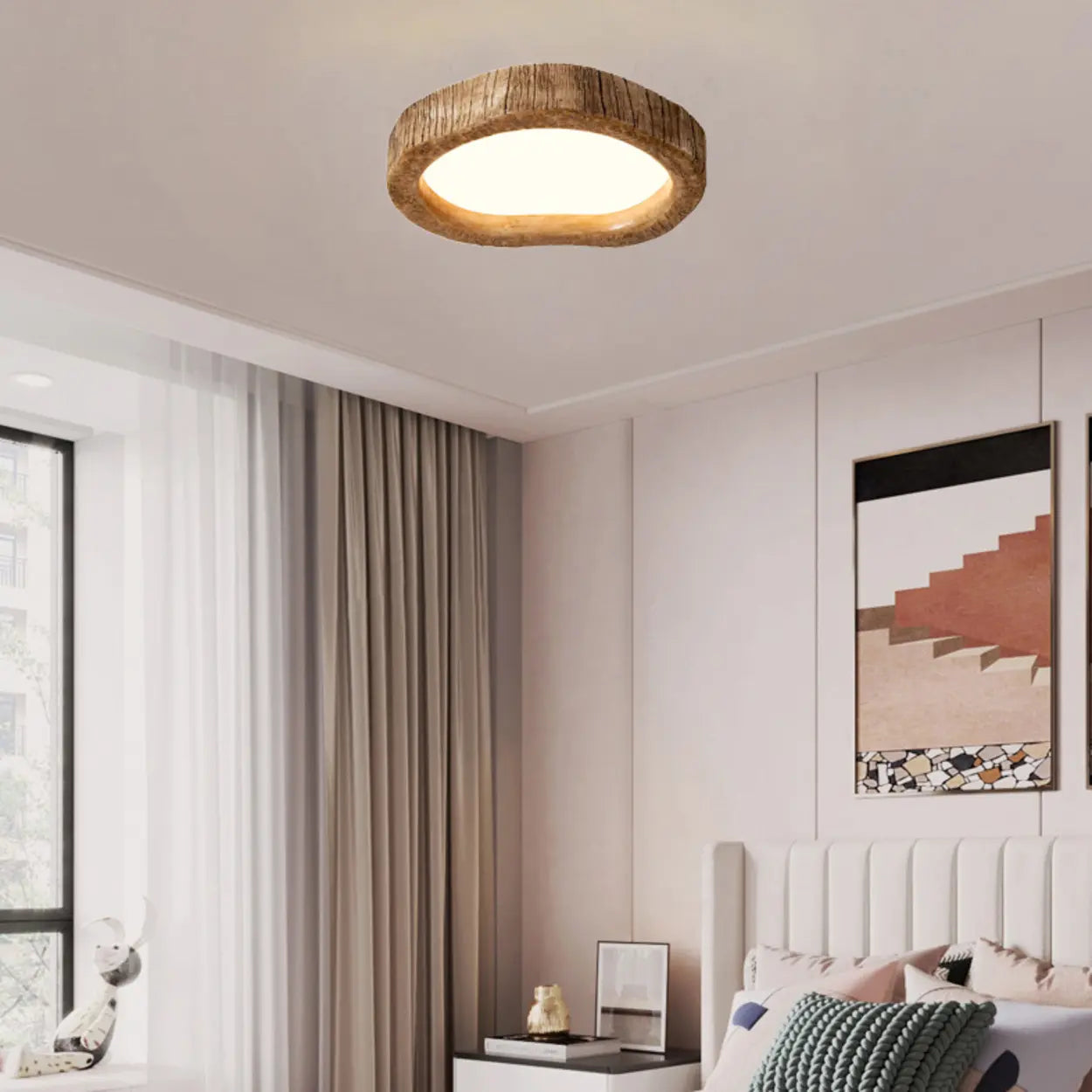 Bedroom Natural Brown Irregular Round Flush Mount Light