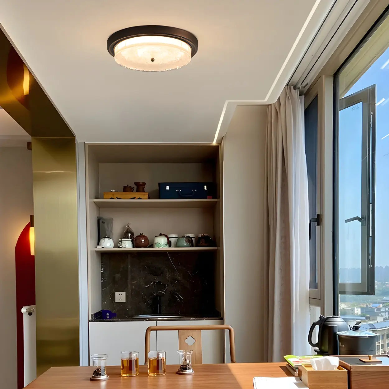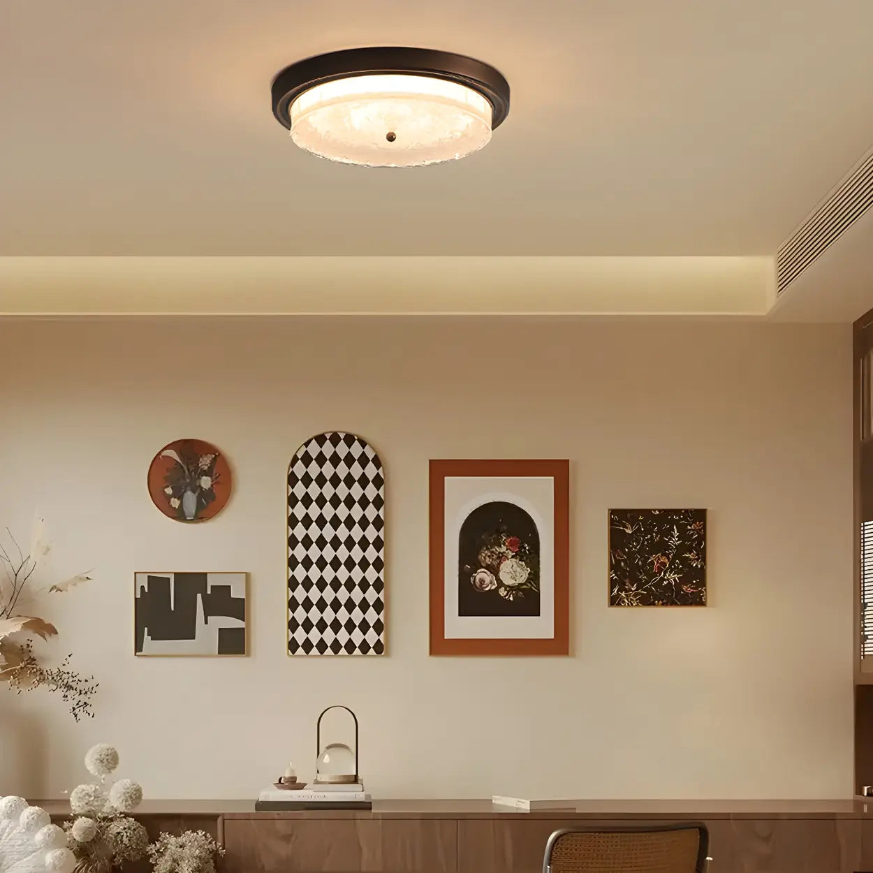 This retro-style round glass ceiling lamp adds a touch of classic elegance to your bedroom. Made of high-quality glass, the warm glow overhead brings a cozy atmosphere to your space. Its retro brown tone matches perfectly with any decor style, filling your space with a nostalgic feel.