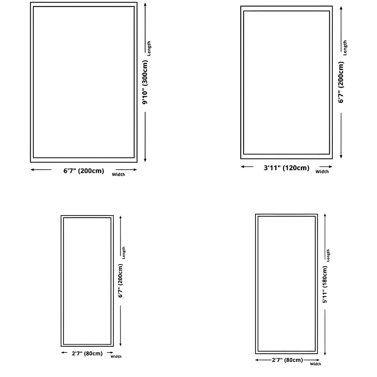 Width | 3'11" (120cm),4'7" (140cm),5'3" (160cm),2'7" (80cm),1'12" (60cm),3'3" (100cm),6'7" (200cm) |