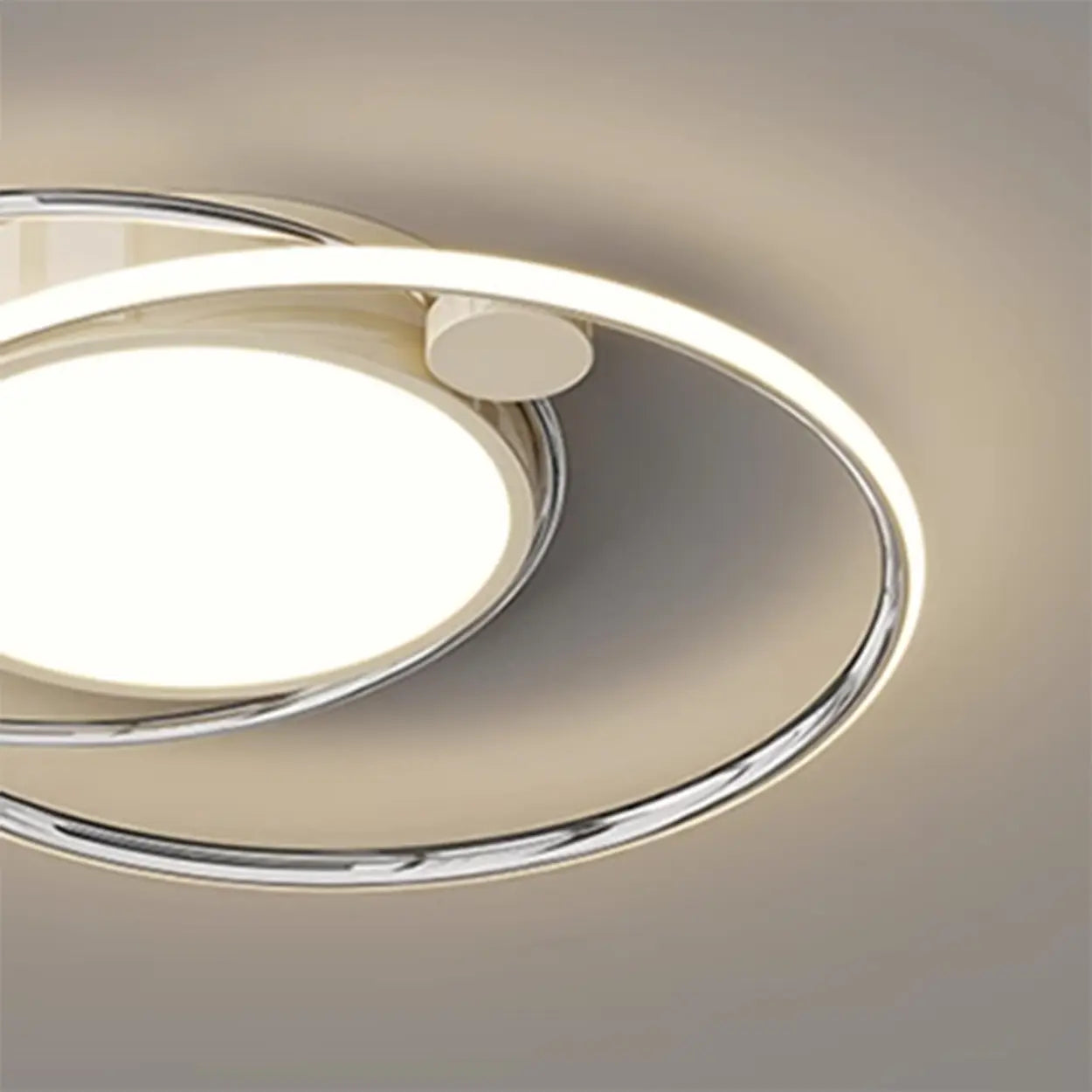The lamp consists of a central circular light source and two rings surrounding it, which is both decorative and practical.