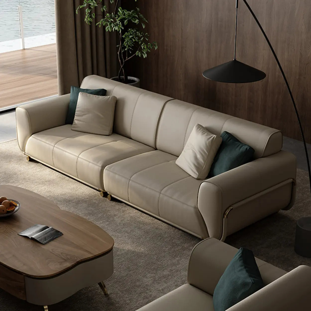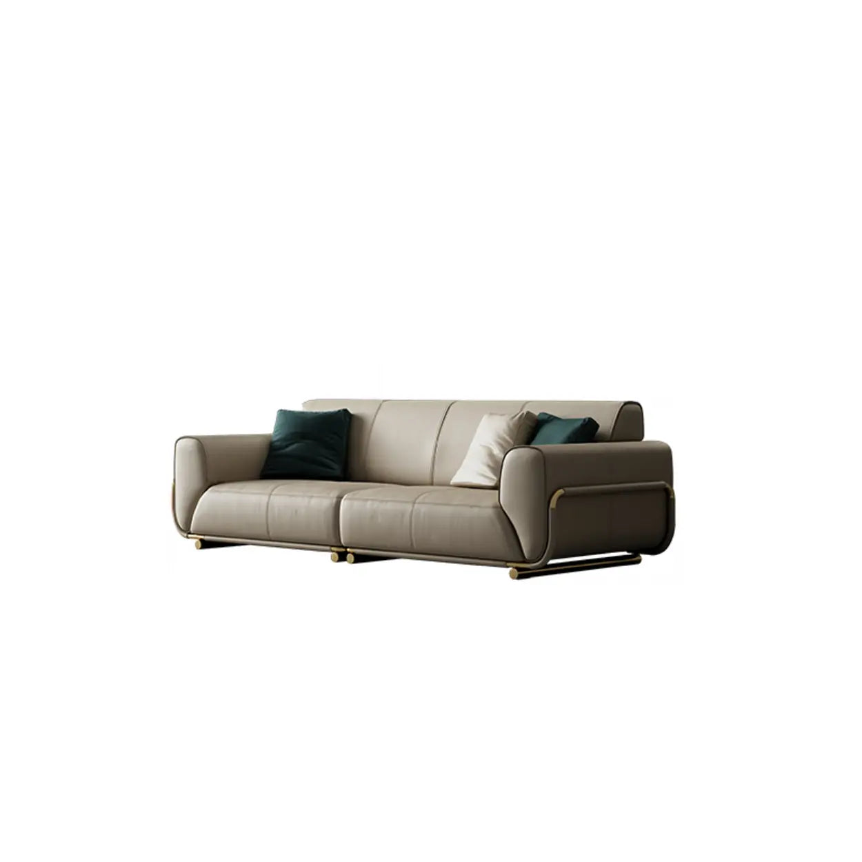 Adding a touch of softness and style to your home, this leather sofa features a simple and elegant design. Built with high-end beige leather that is soft to the touch and very robust, it becomes ideal for long-term use. It is perfect for entertaining guests or daily home use. Its classic straight-line silhouette paired with soft tones can easily blend into any interior design style.