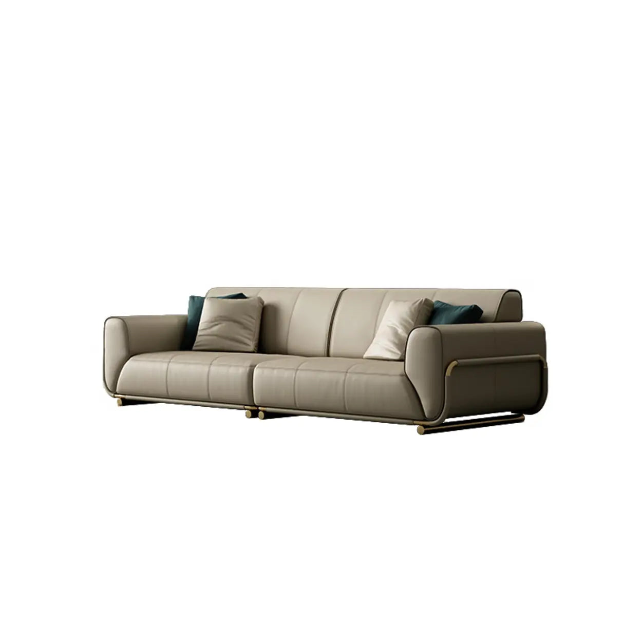 Beige Genuine Leather Tight Back Extra Long Sofa