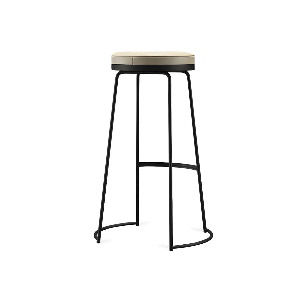 Beige Round Leather Backless Sled Metal Bar Stools - Black / 1 Piece / Short Stool(18"H) is backordered and will ship as soon as it is back in stock.