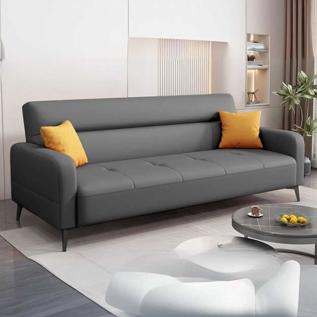 This beige sofa perfectly combines simplicity and fashion, ideal for any modern home decoration. Composed of high-end leather, it is wear-resistant and convenient to clean, keeping your room clean and beautiful. Whether you are in the living room, family room, or office, it can bring comfort and taste to your space. This sofa comes with two classic pillows, allowing you to enjoy the ultimate comfort, which is an ideal choice for relaxation.