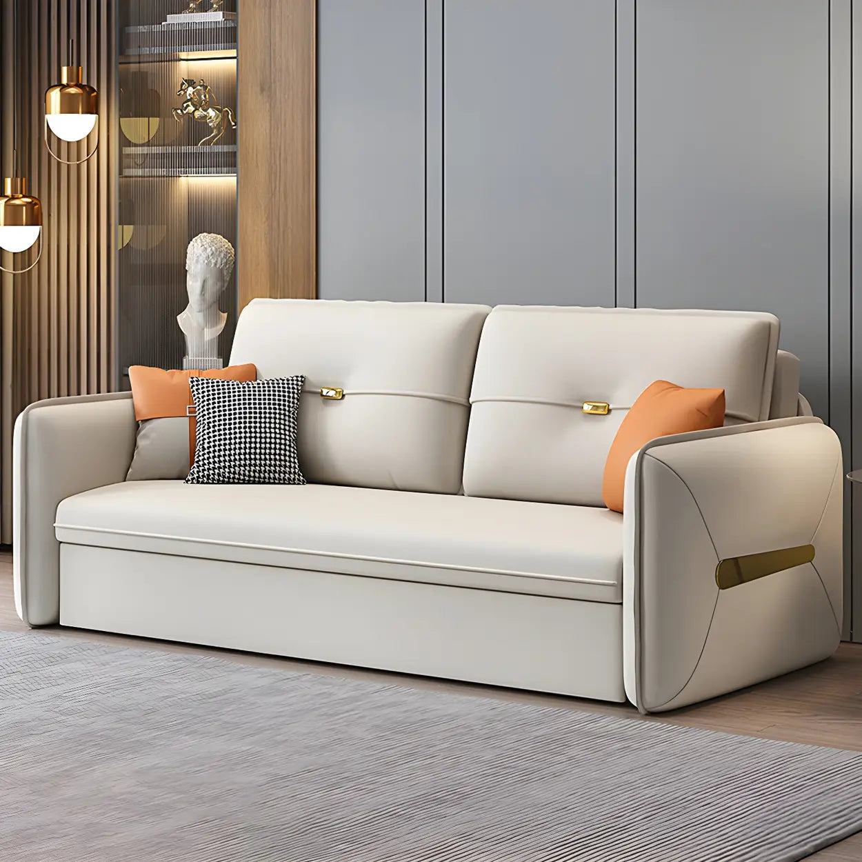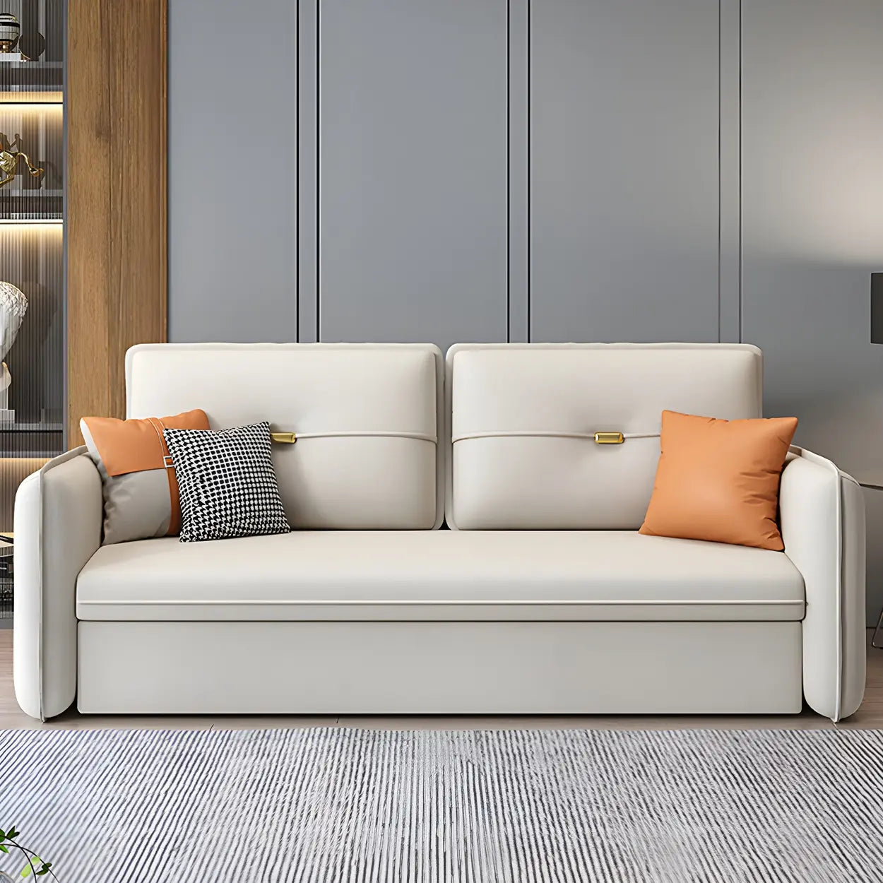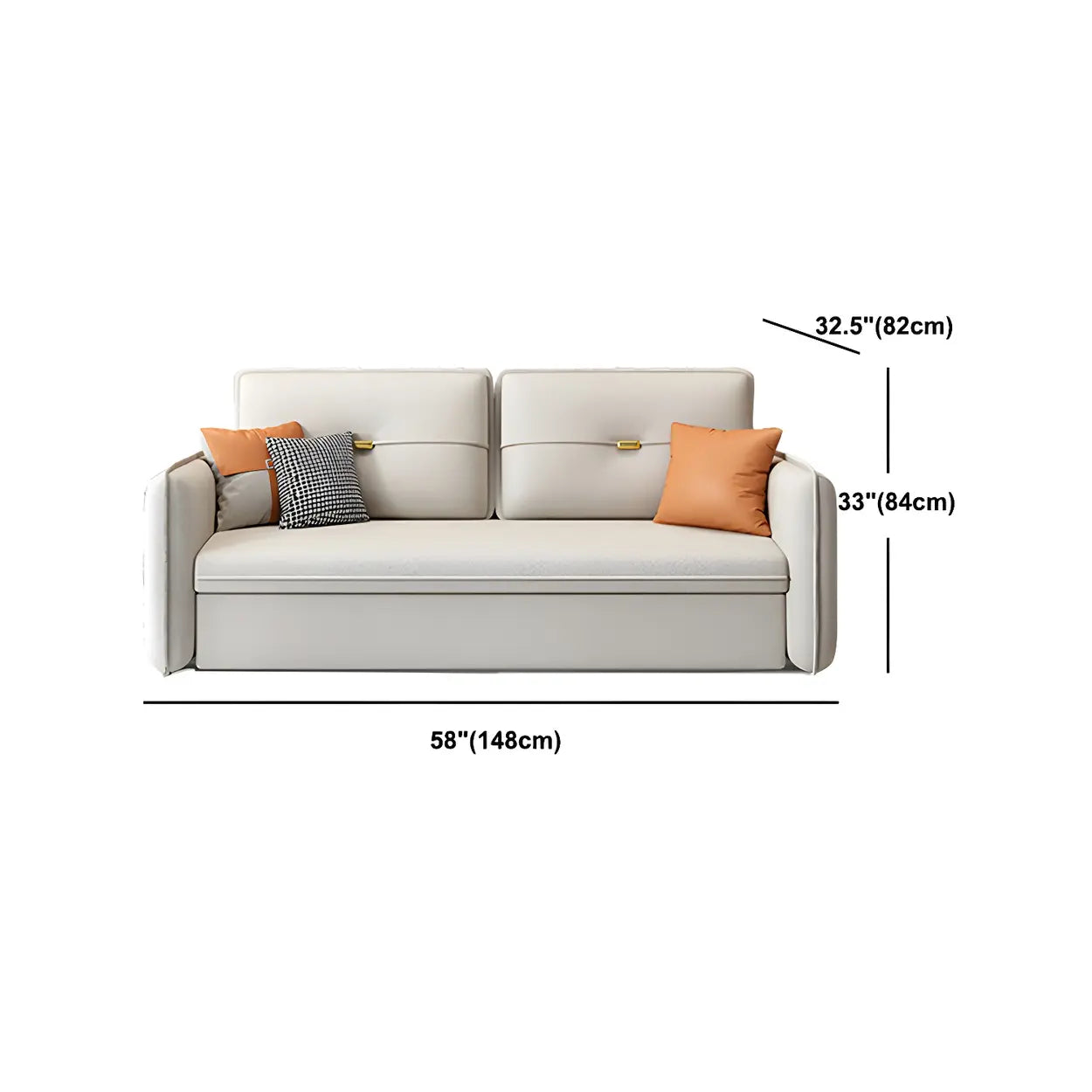 Beige Stain Resistant Faux Leather Square Arm Sofa Bed