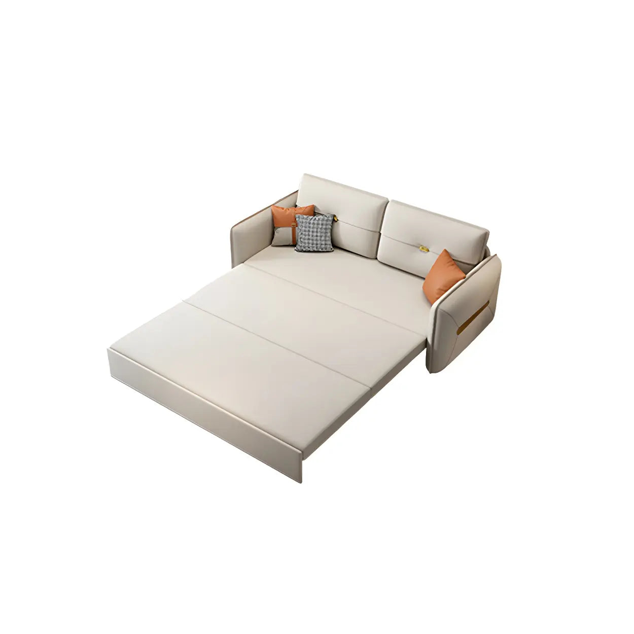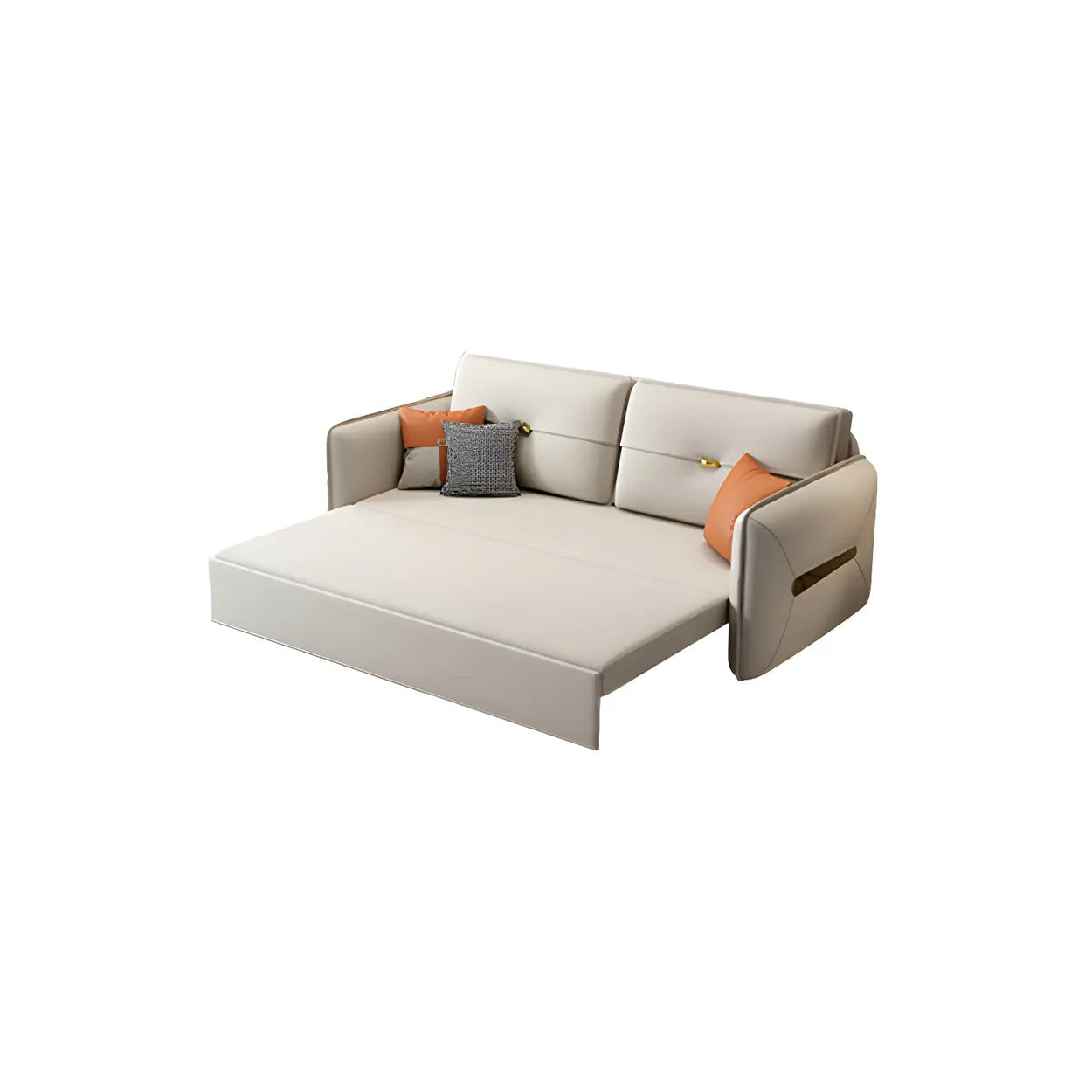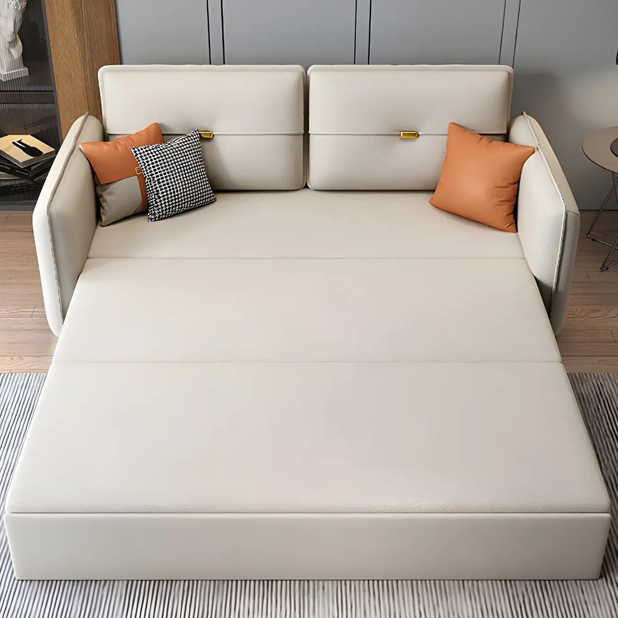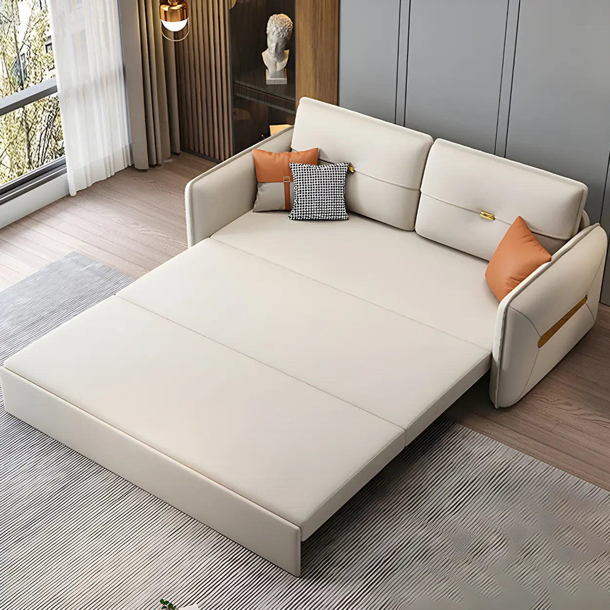 Beige Stain Resistant Faux Leather Square Arm Sofa Bed