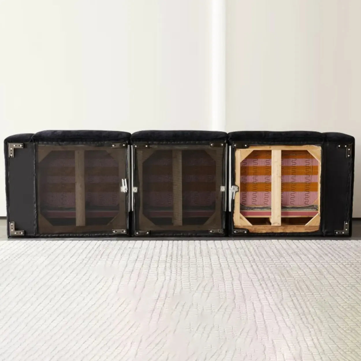 Black Chenille Square Arm Concealed Support Sofa