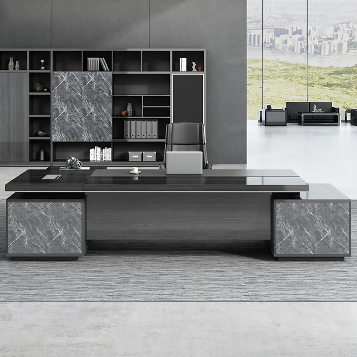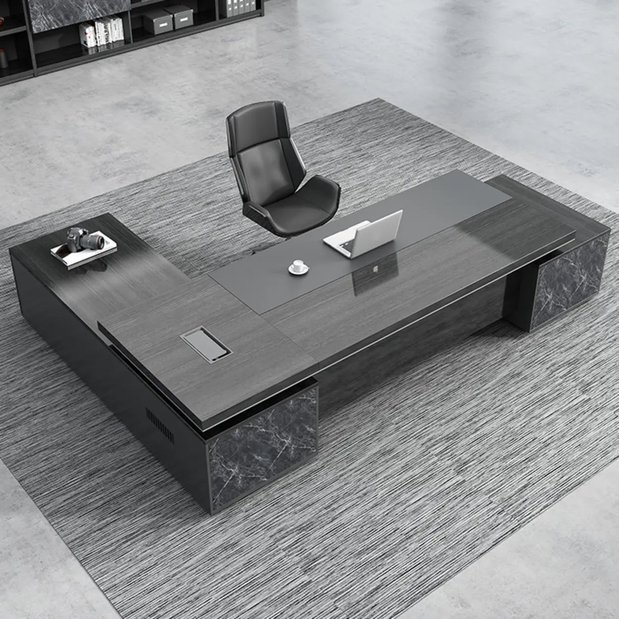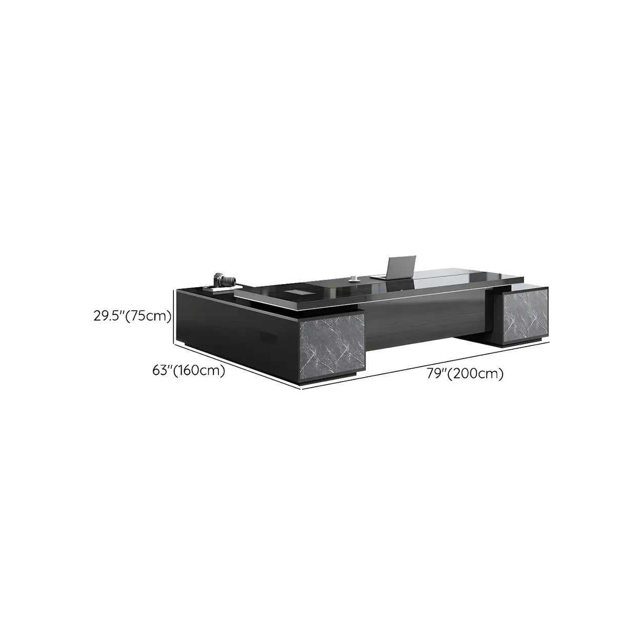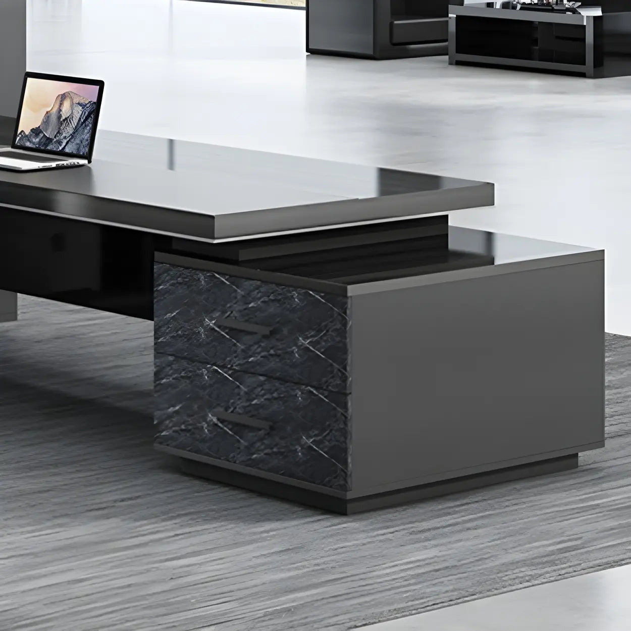 Giving your office a modern and stylish appearance, this black L-shape executive desk features an advanced design and long-lasting materials. Combining an elegant, rich black marble with superior wood, it generates a classy and timeless aesthetic.