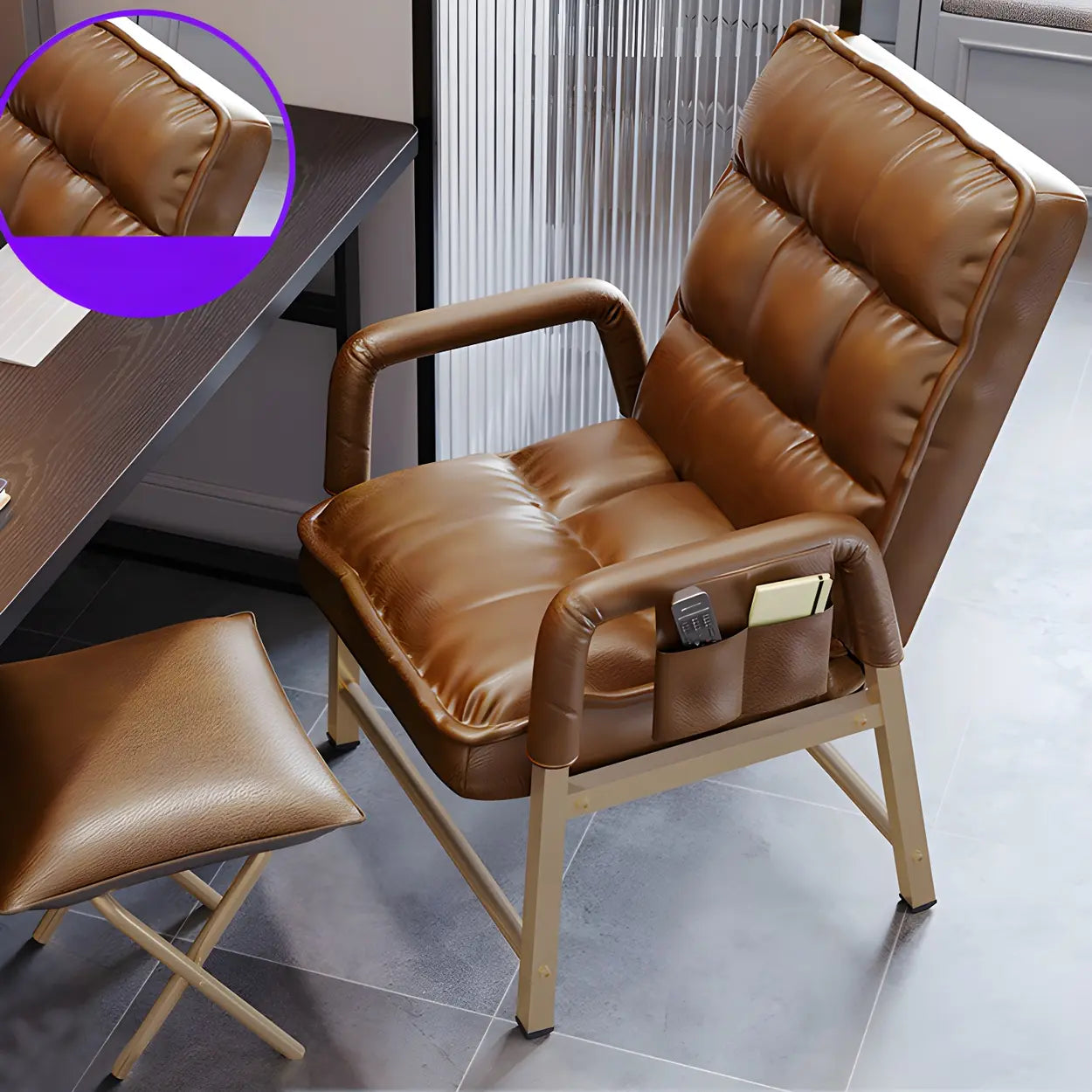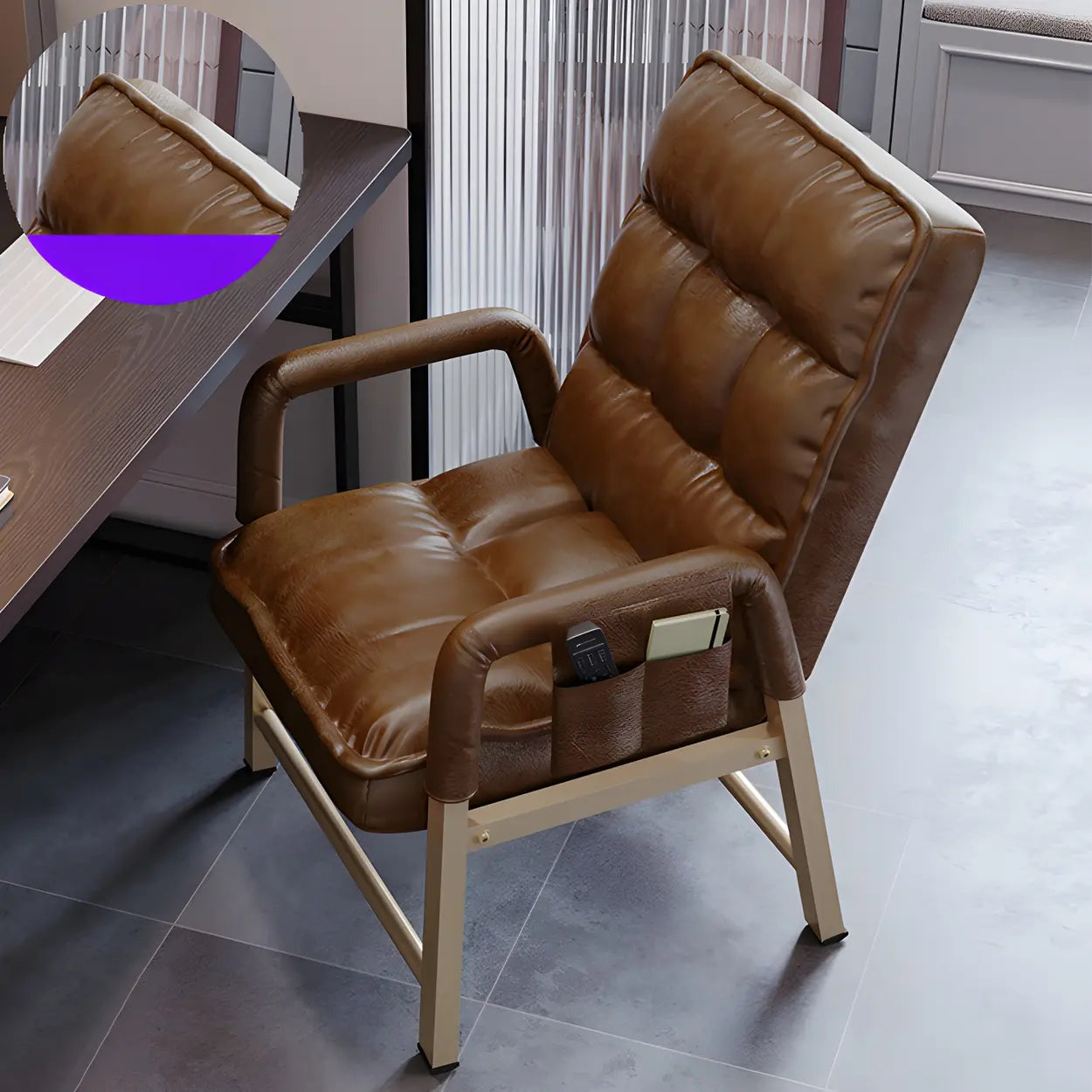 This modern minimalist office chair has high-end PU leather fabric and an ergonomic design. It heightens style and comfort in your office environment. Whether you are working for a long time or taking a short break, it can provide you with support and comfort.
