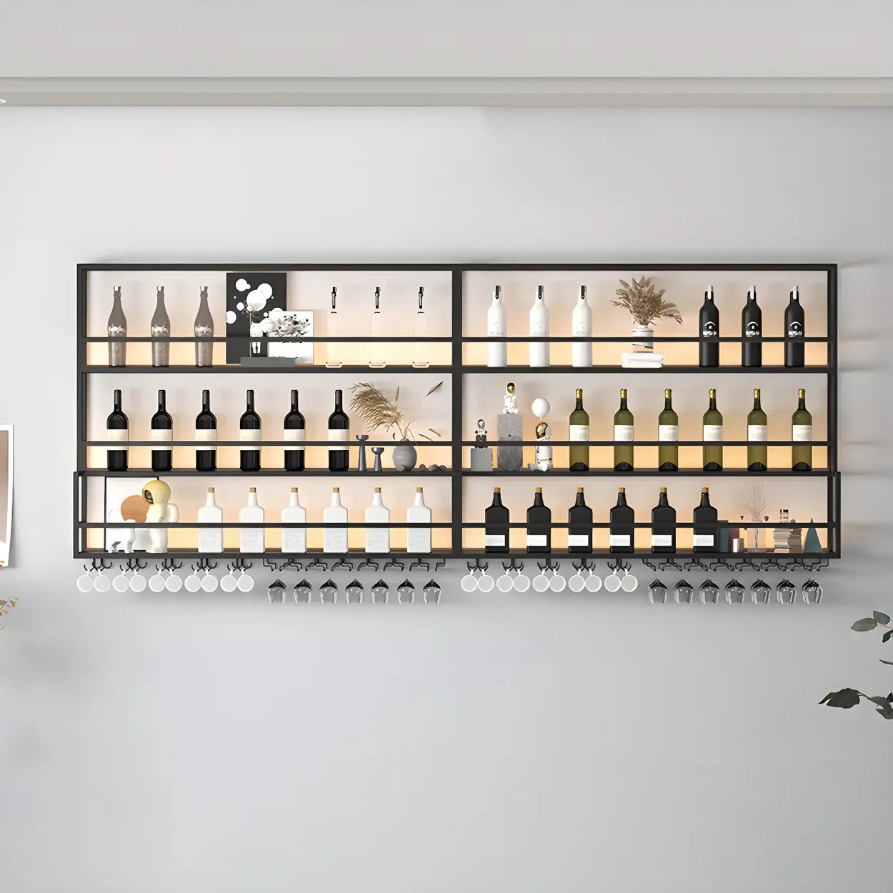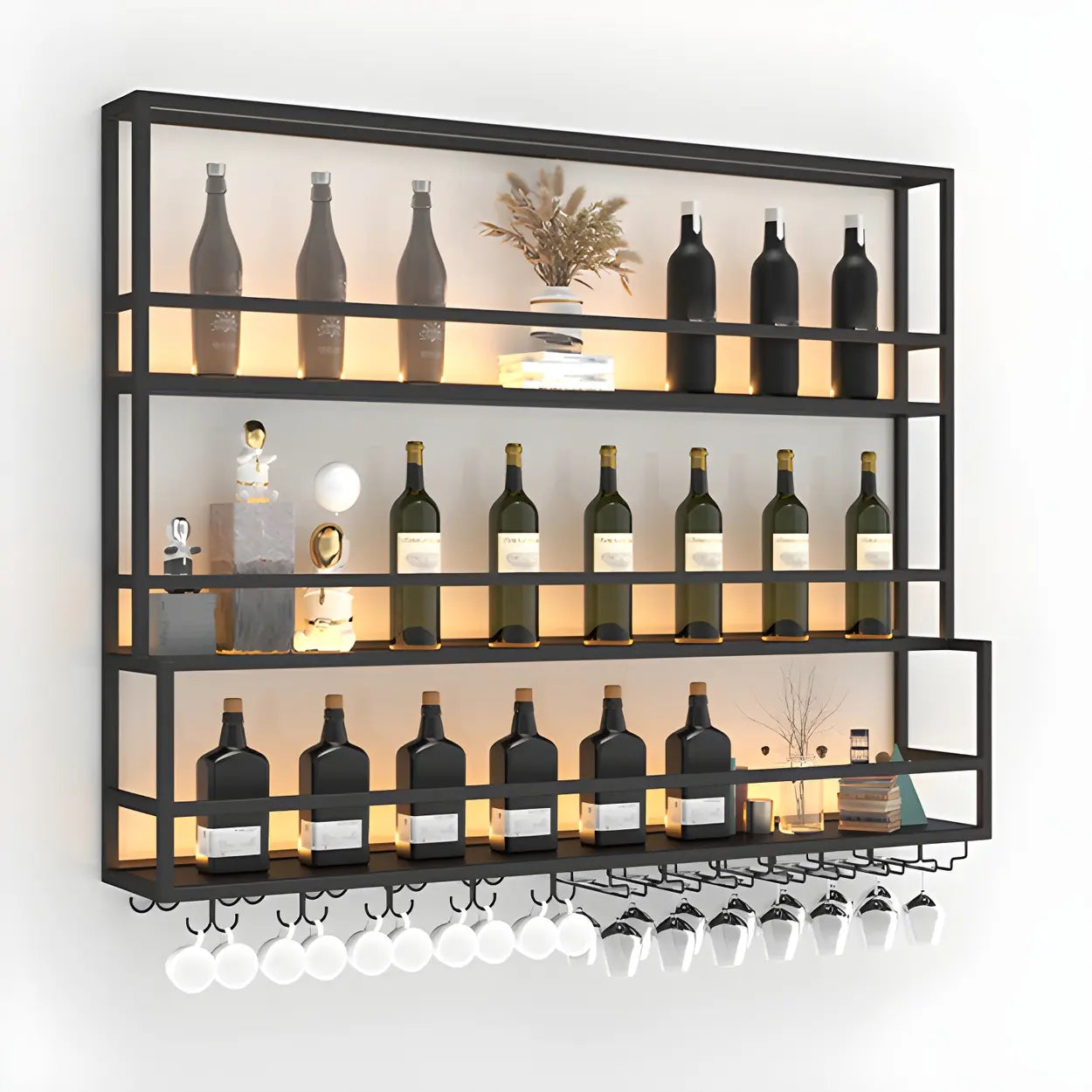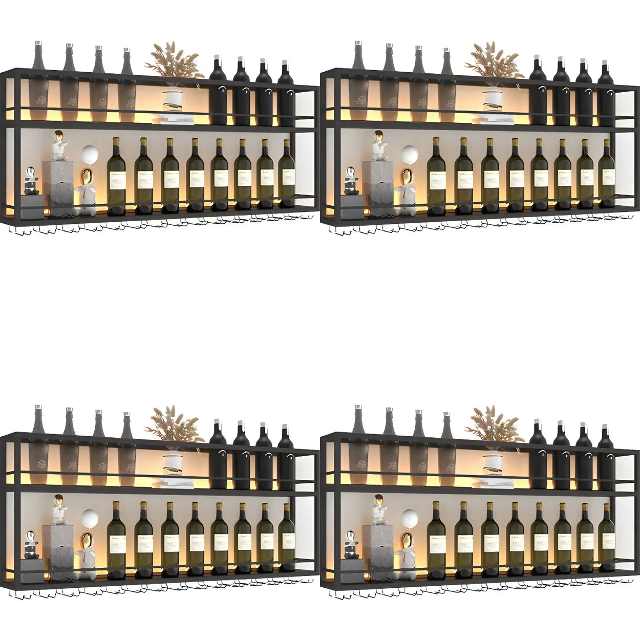 Black Metal Floating Stackable Wall Mounted Wine Rack - 39.4"L x 7.9"W x 25.6"H / With Light / 1 Piece is backordered and will ship as soon as it is back in stock.