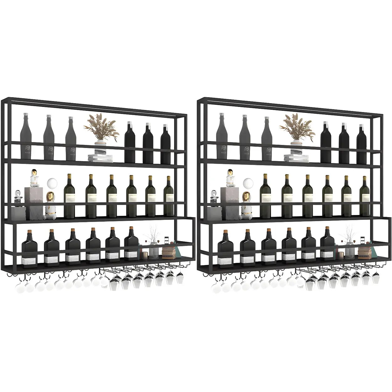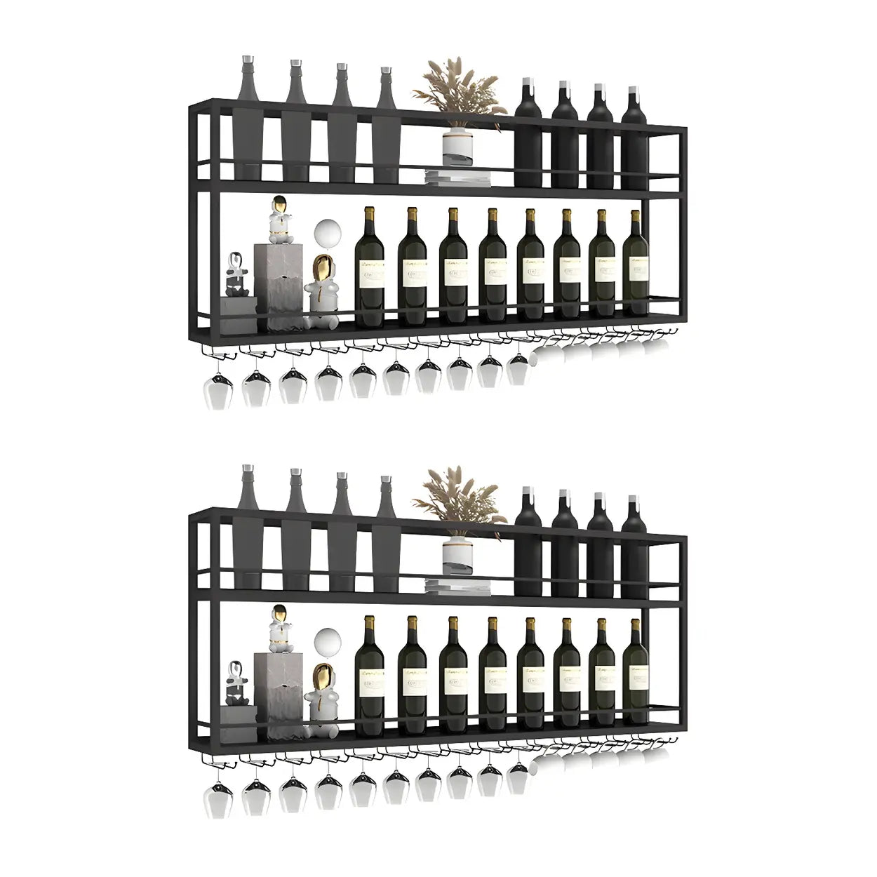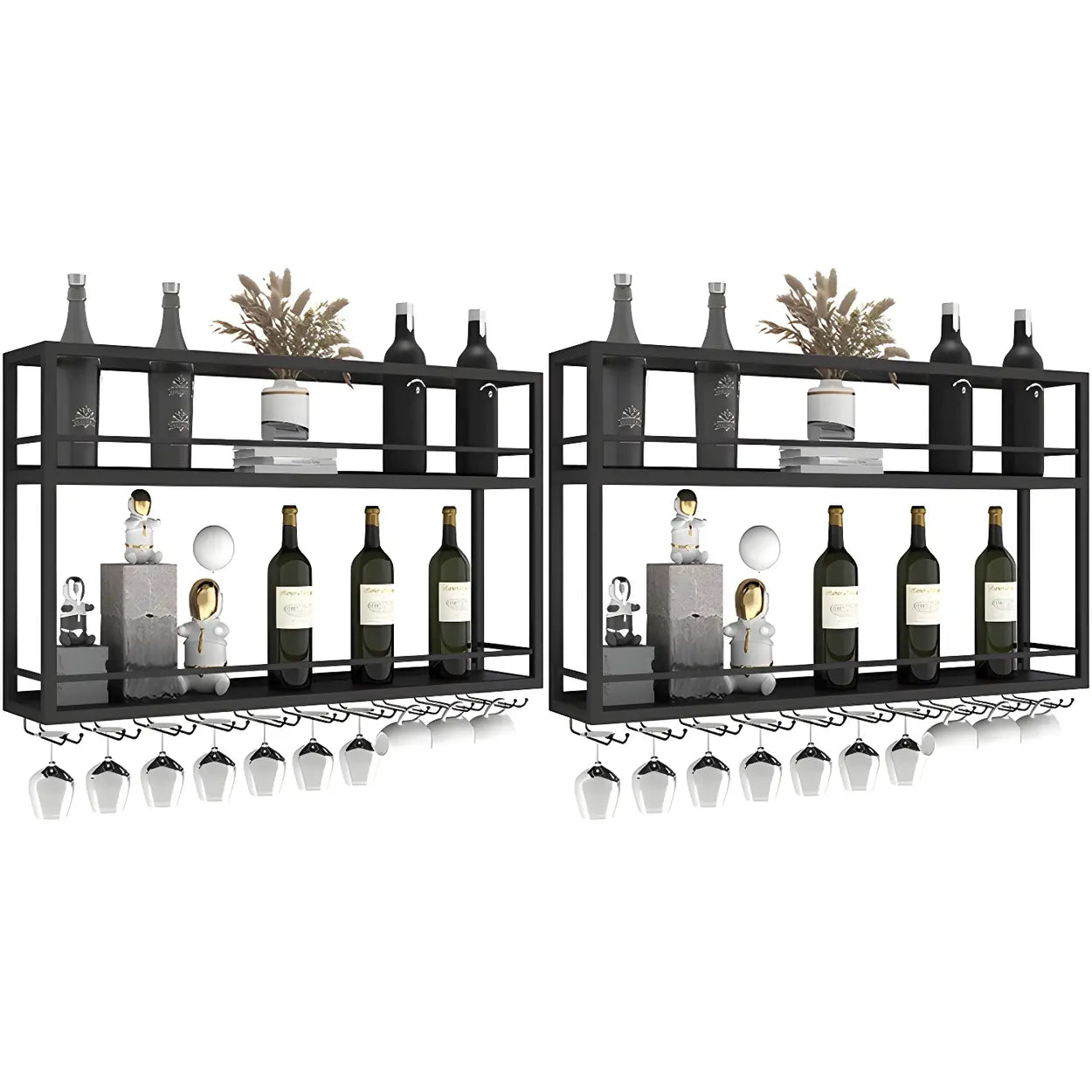 Black Metal Floating Stackable Wall Mounted Wine Rack