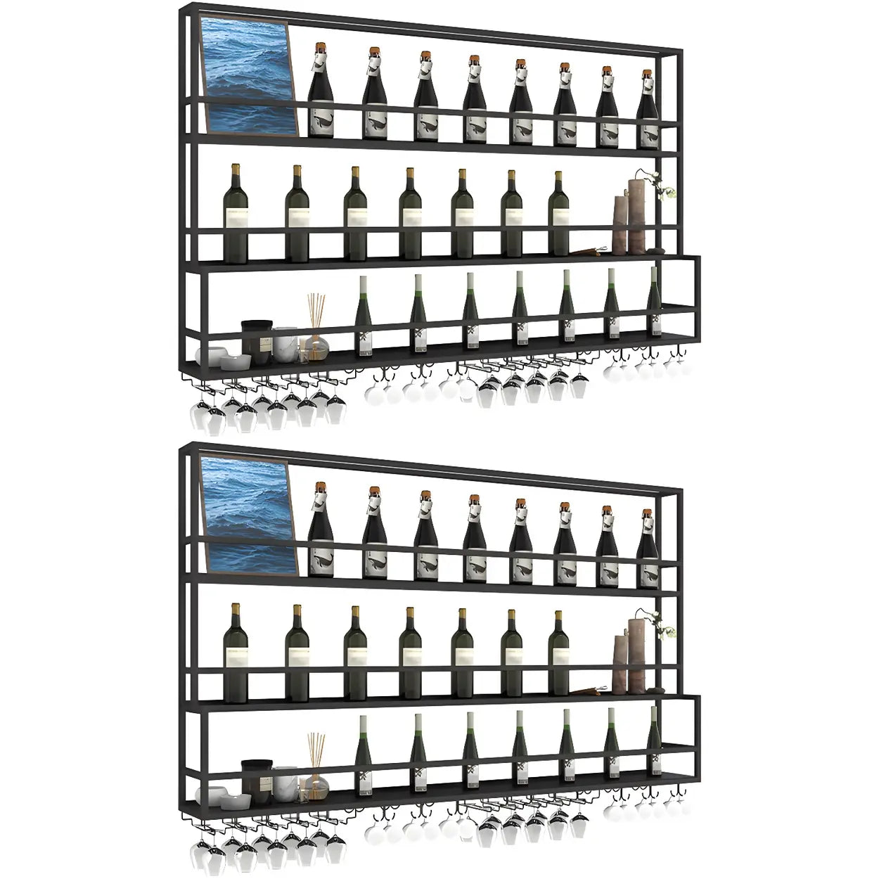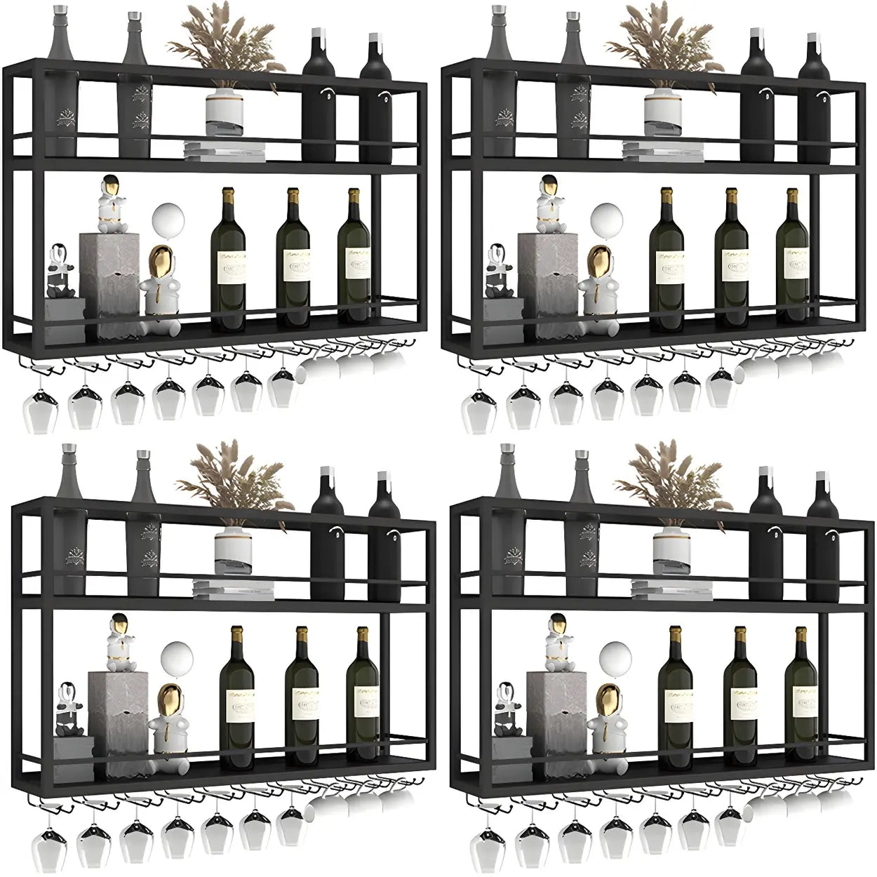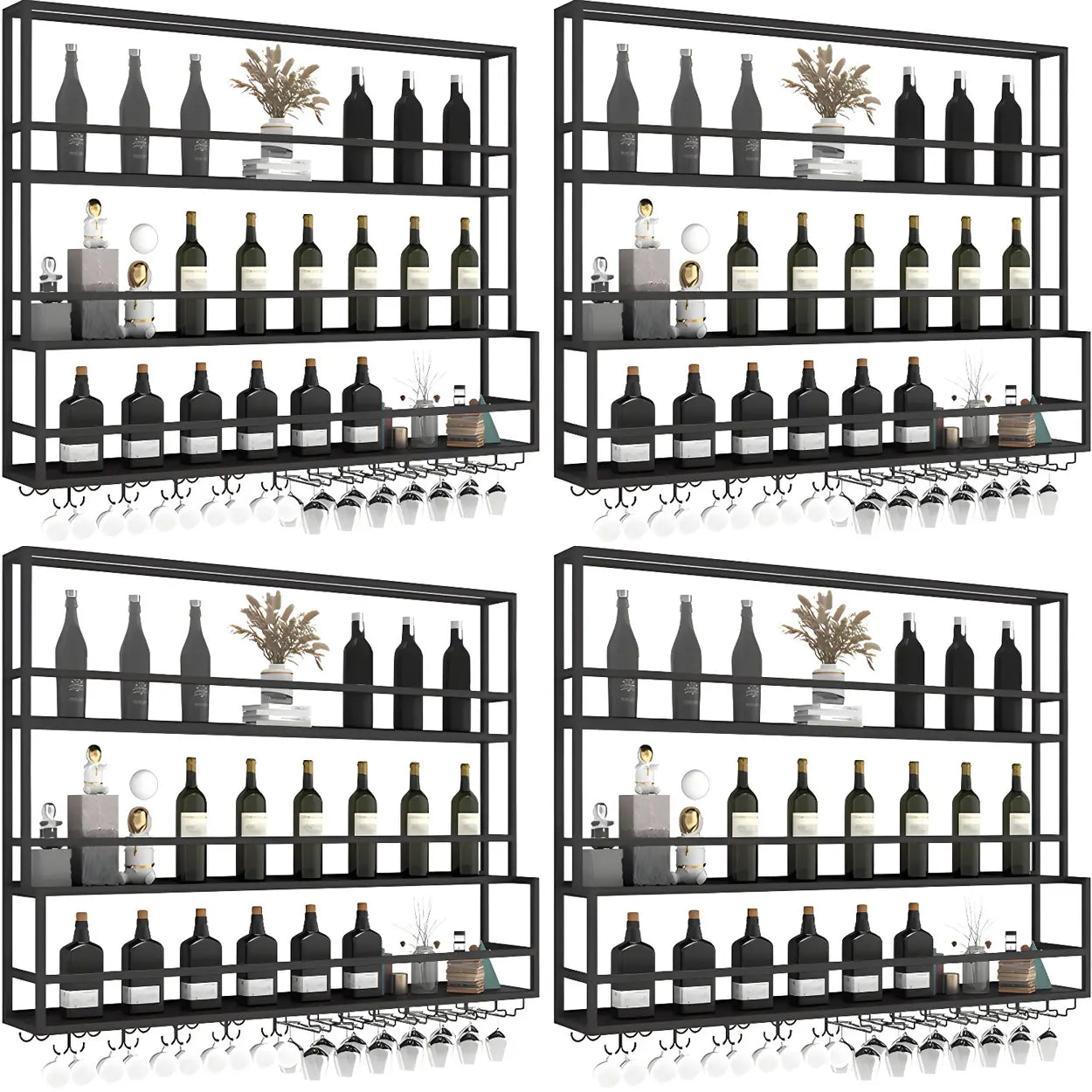 Black Metal Floating Stackable Wall Mounted Wine Rack