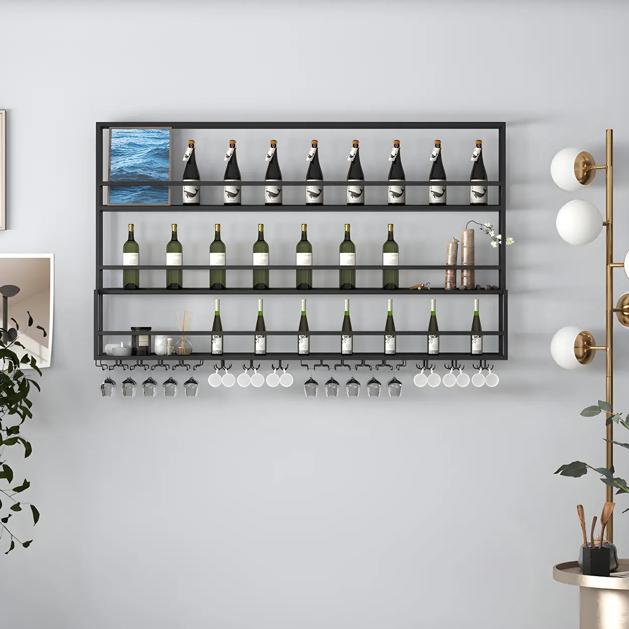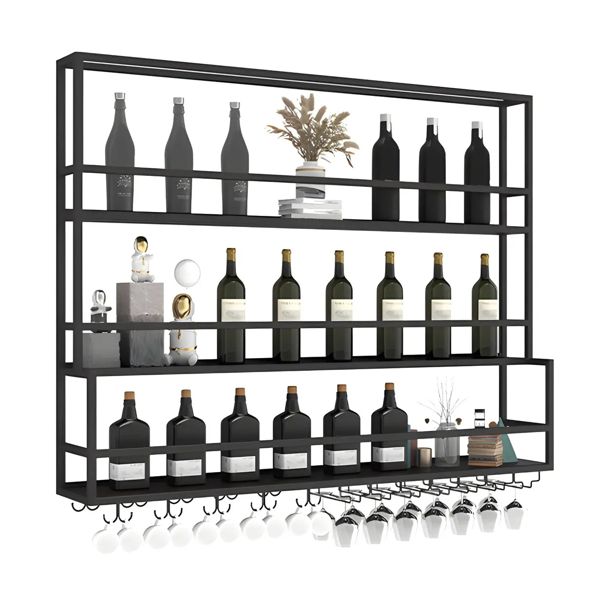 This modern hanging wine rack adds both elegance and practicality to your living space. Made of solid black metal, its suspended design blends style and functionality seamlessly, making it the ideal choice for storing and displaying wine. Whether in your kitchen, restaurant, or bar, this wine rack can easily integrate into various environments and add a modern touch to your home decor.