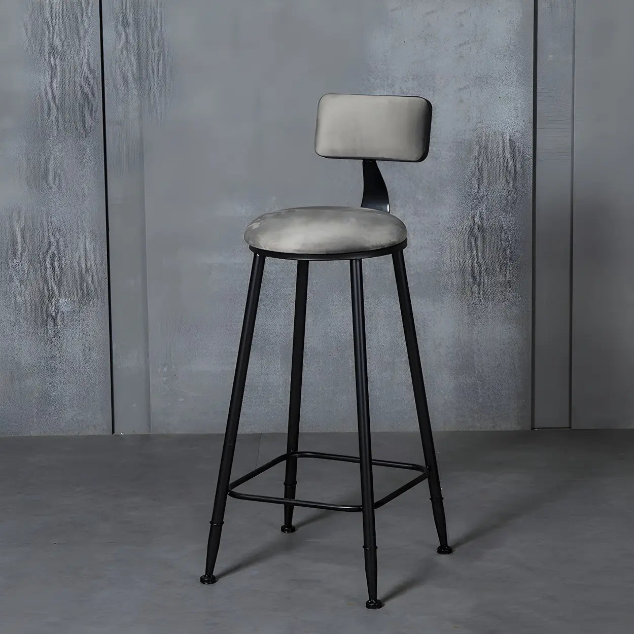 Black Metal Round Fabric Cushion Backrest Bar Stool