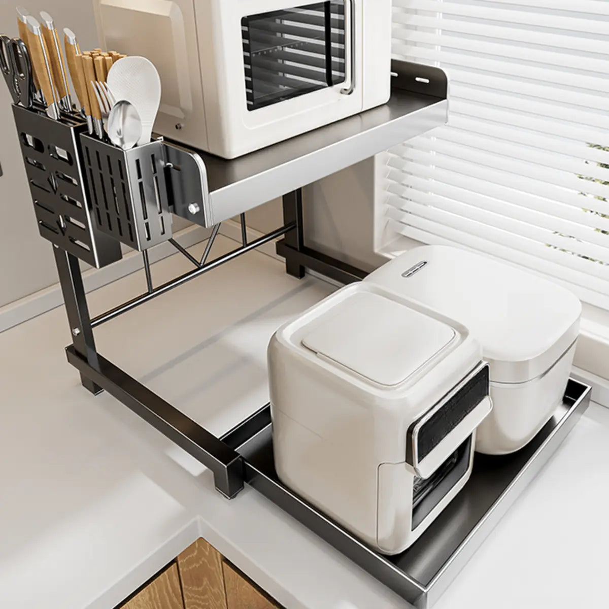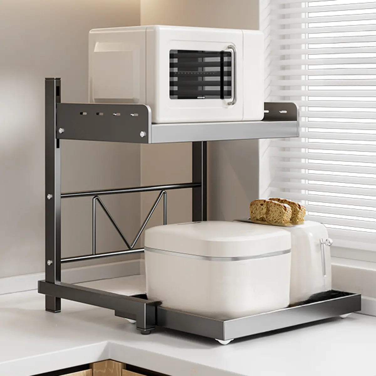It is suitable for storing kitchen appliances, tableware, and condiments to save space.