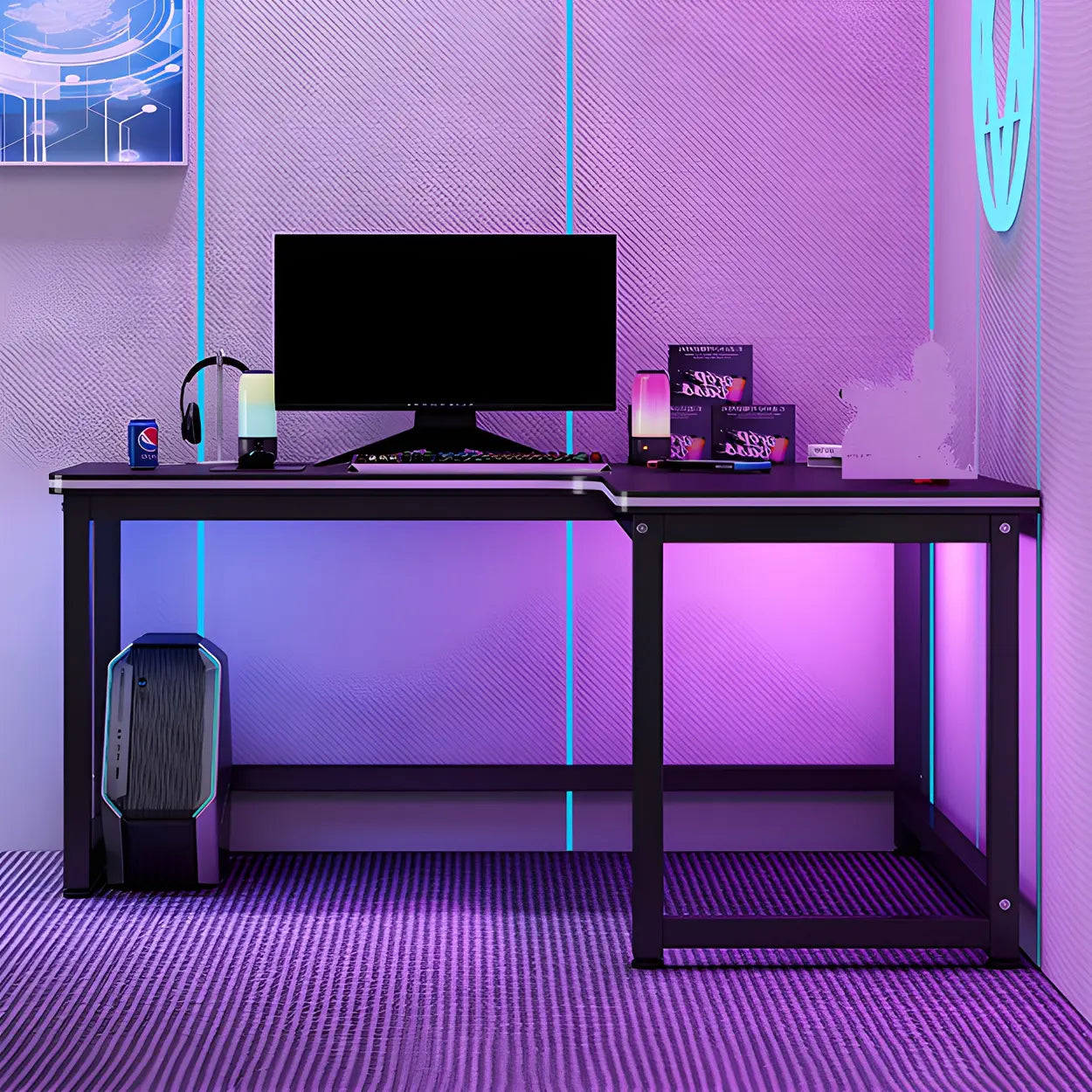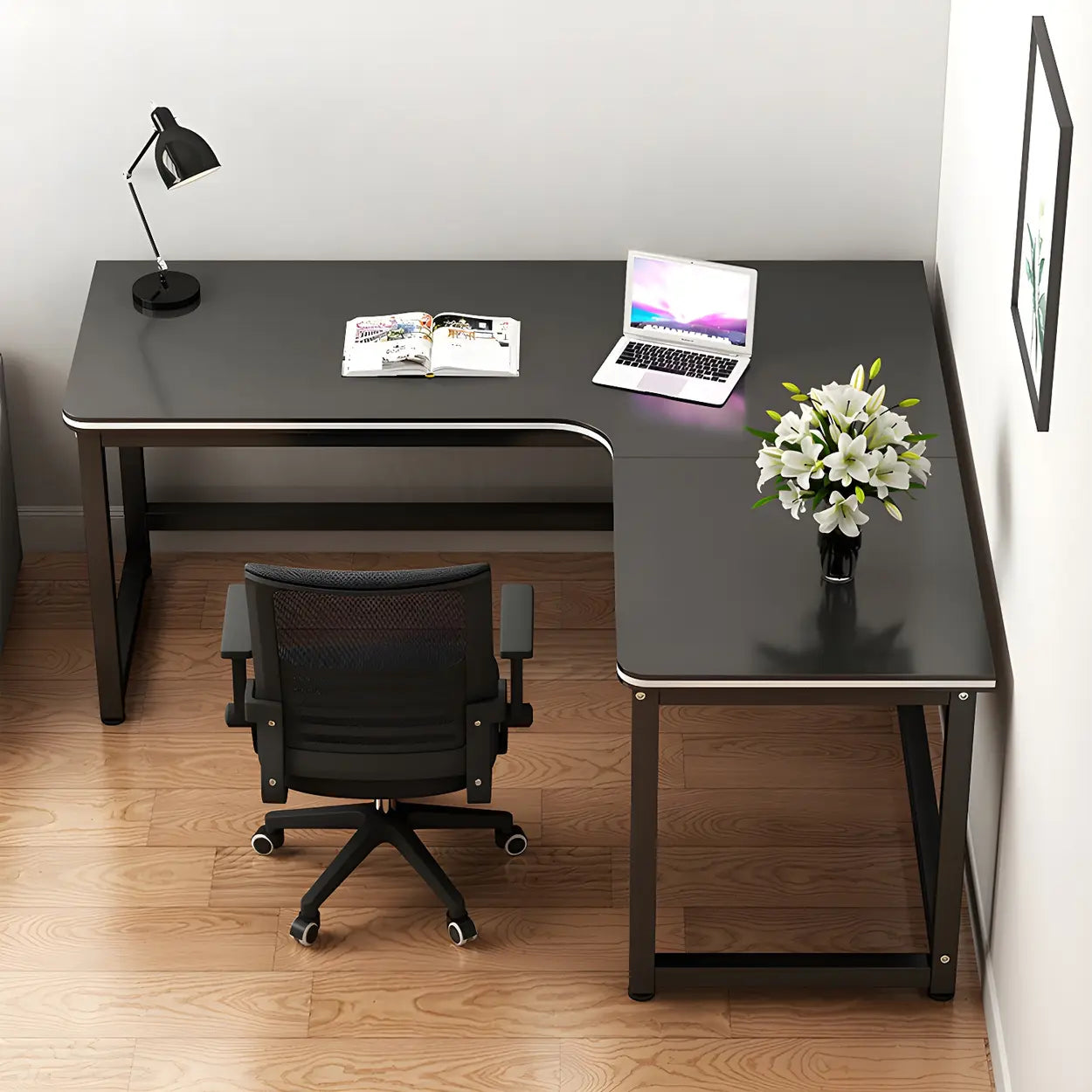 Black Metal Sledge Wooden L-Shaped Writing Desk