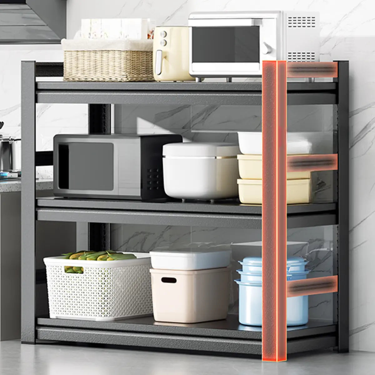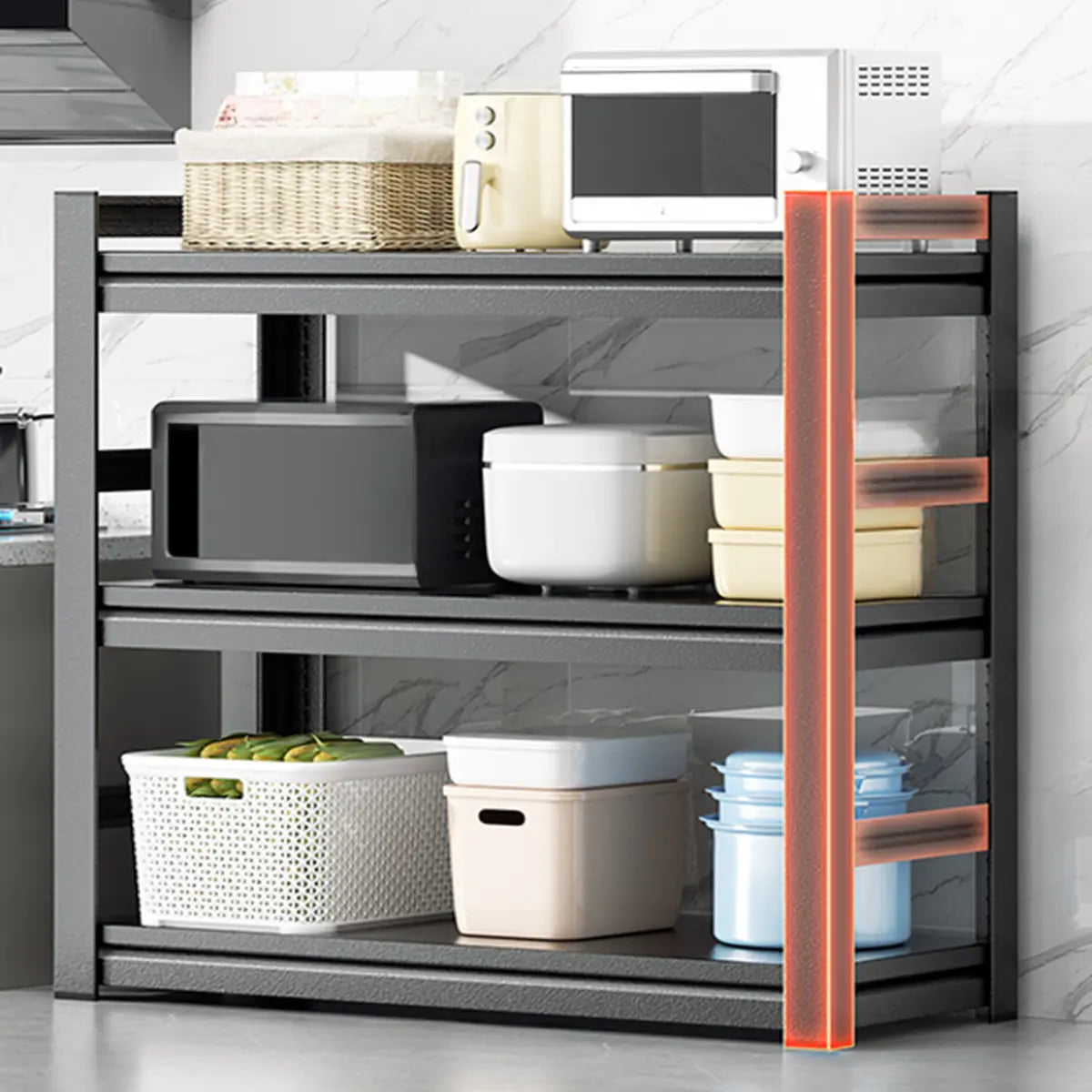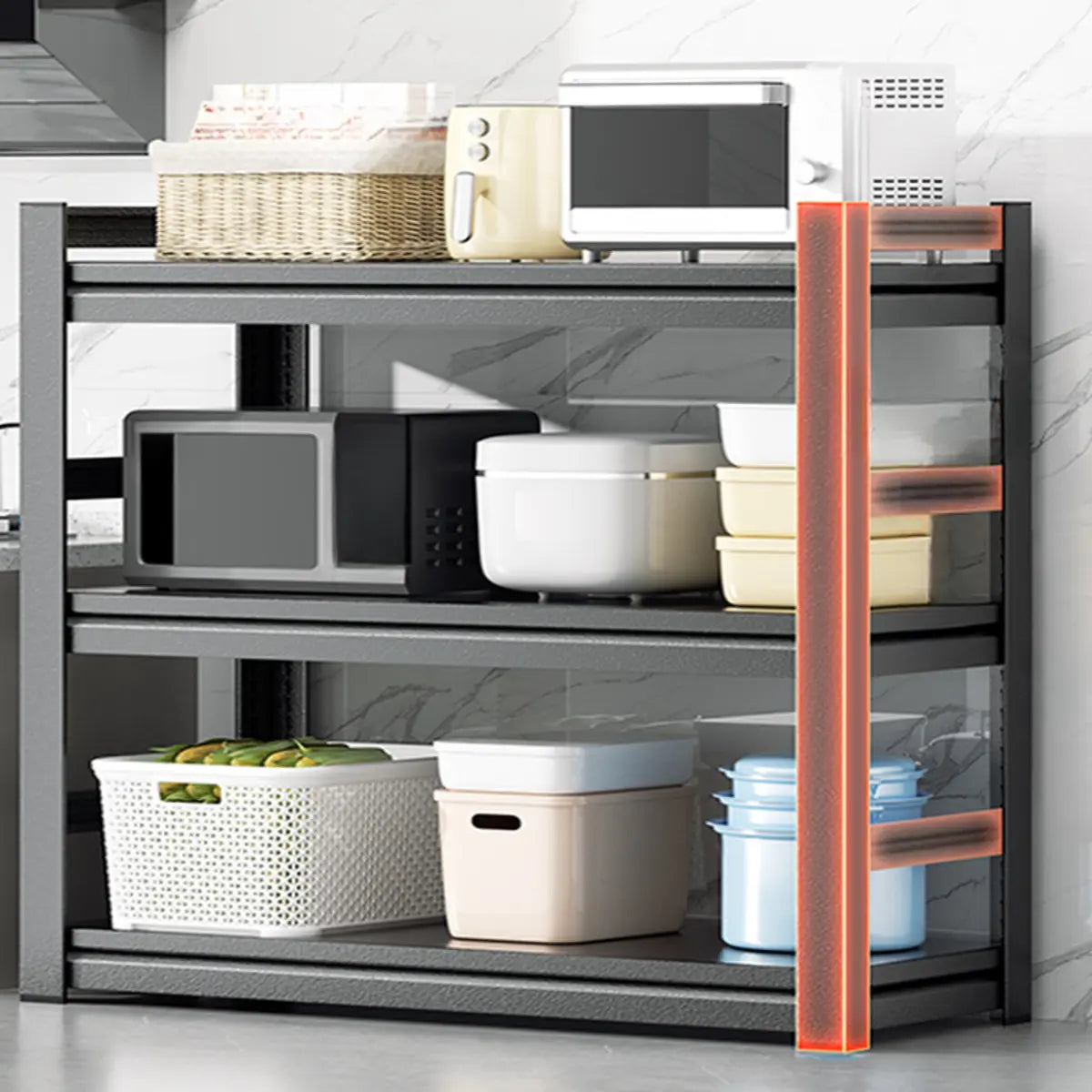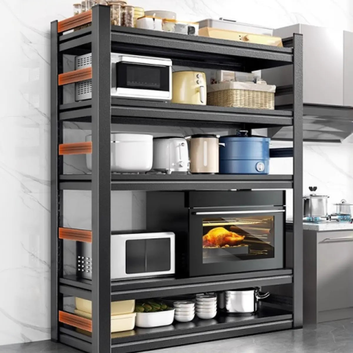 Multi-layer storage space can accommodate microwave ovens, cookware, ingredients, and other items.