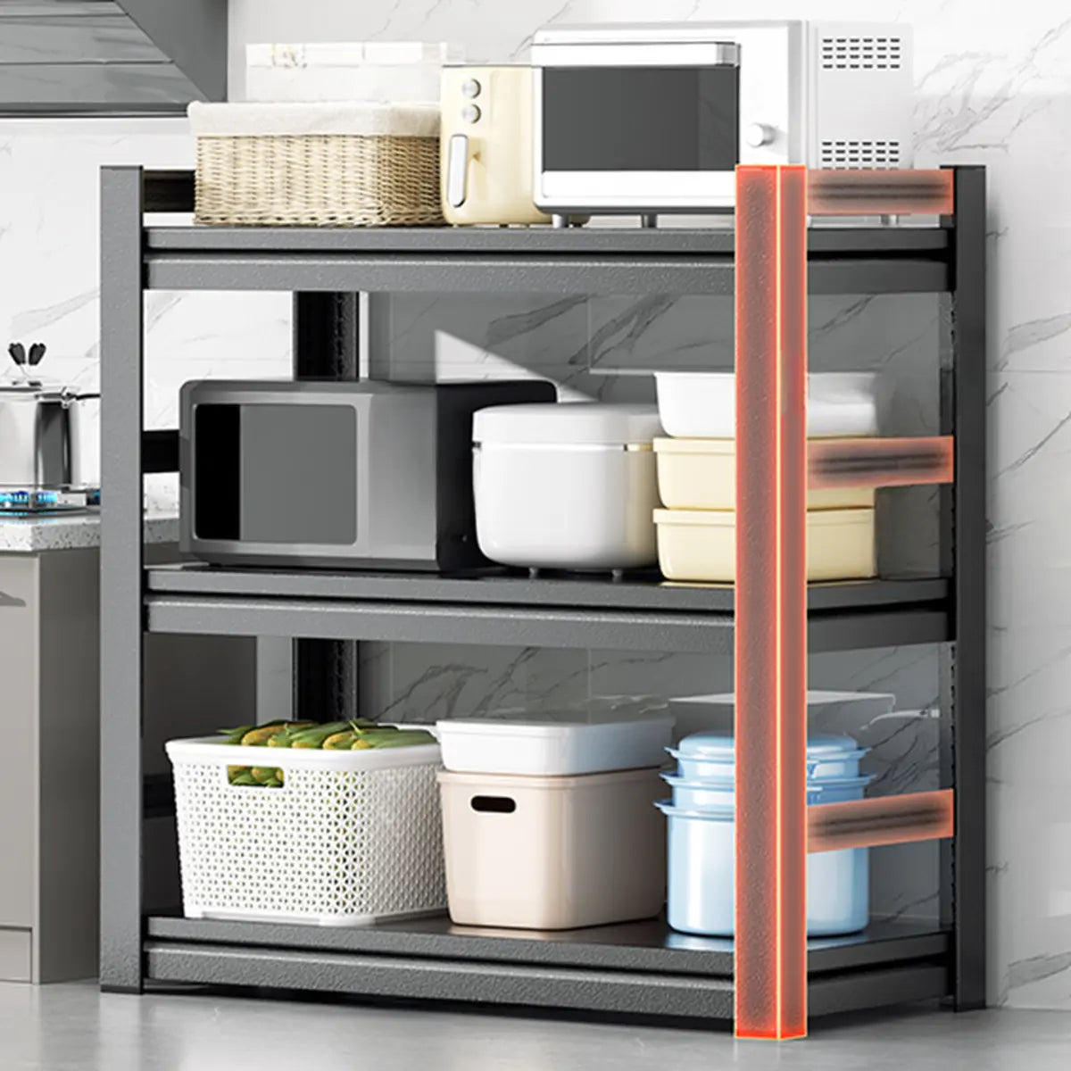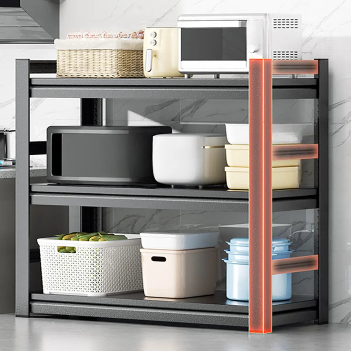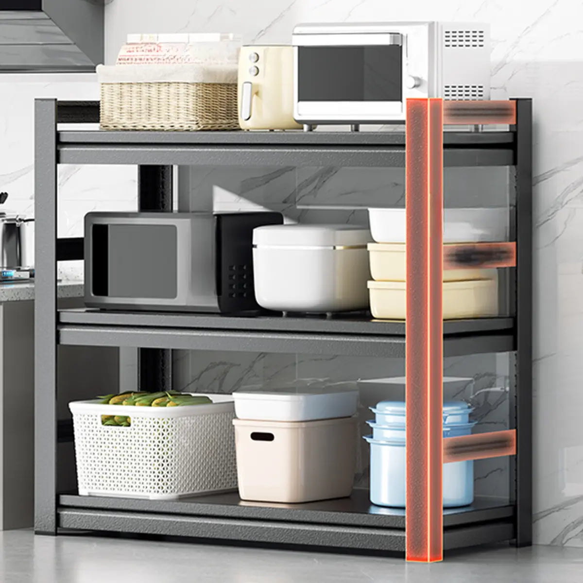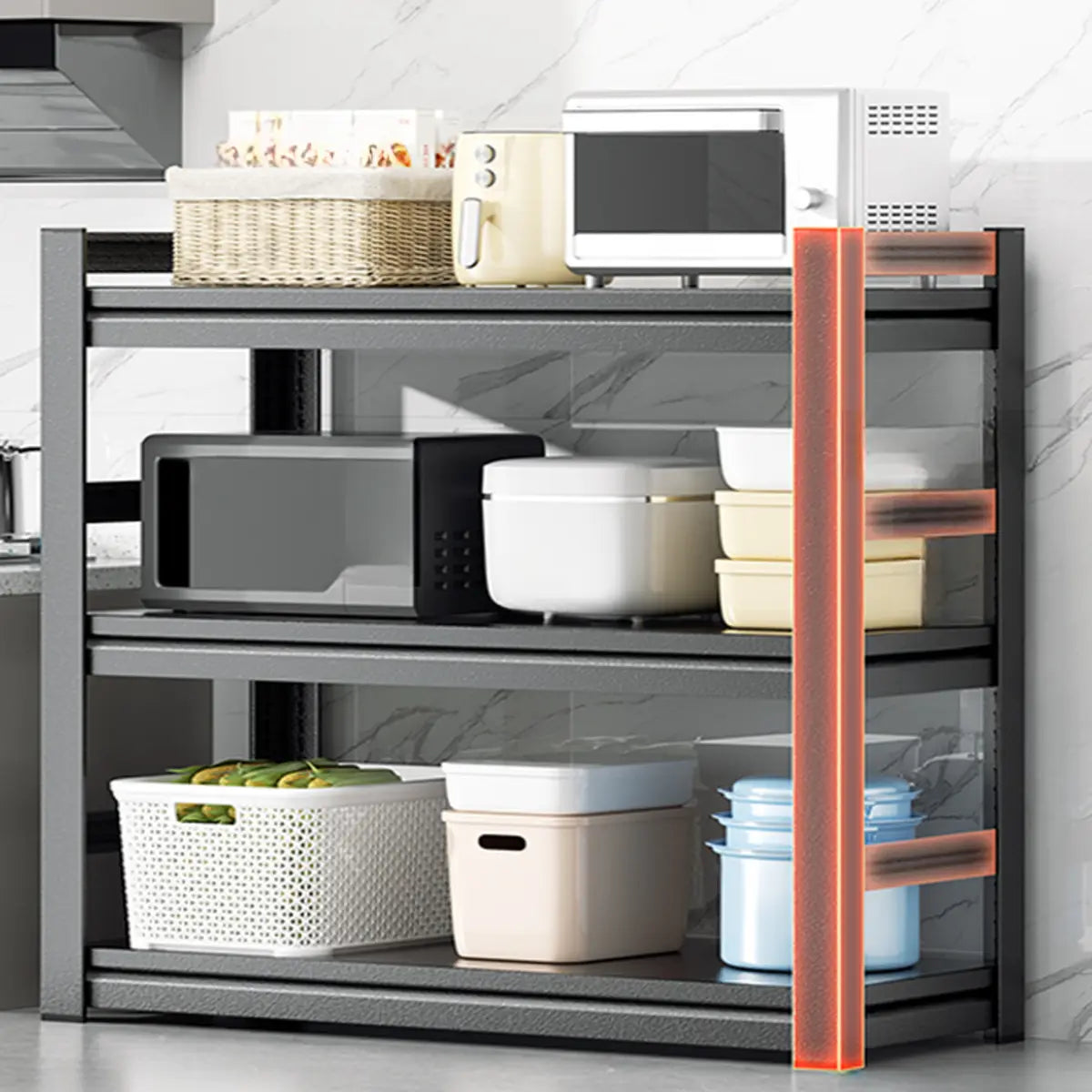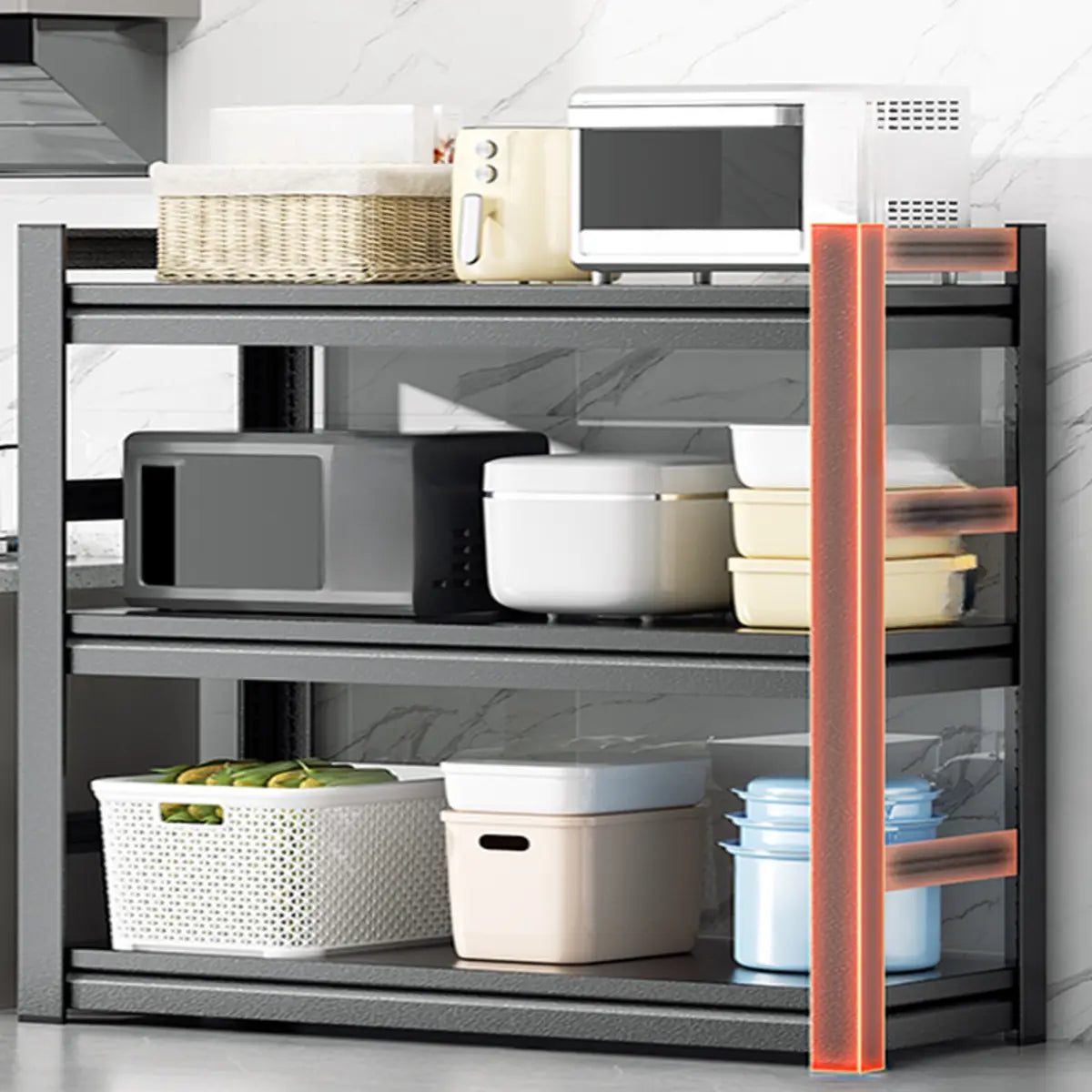 Multi-layer storage space can accommodate microwave ovens, cookware, ingredients, and other items.