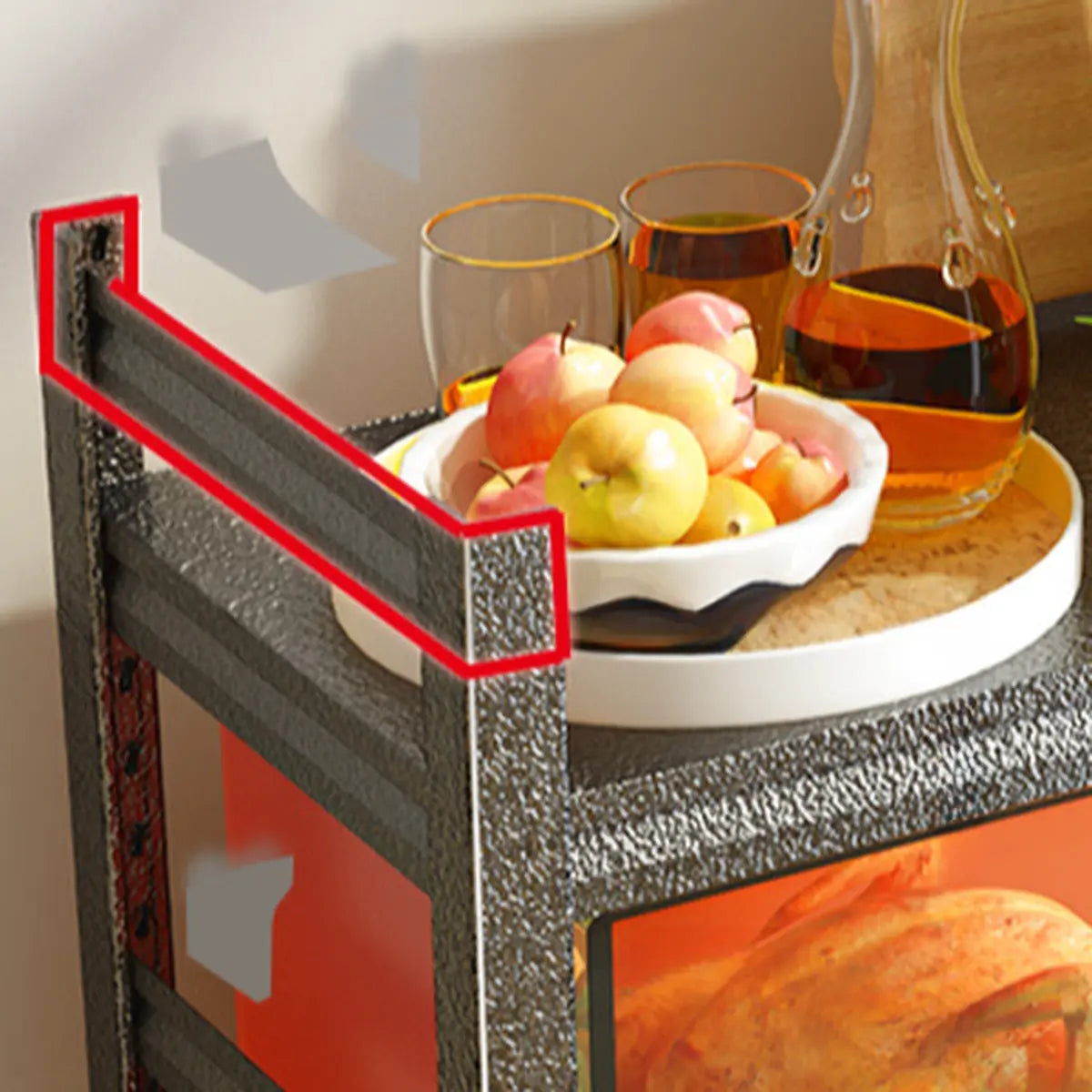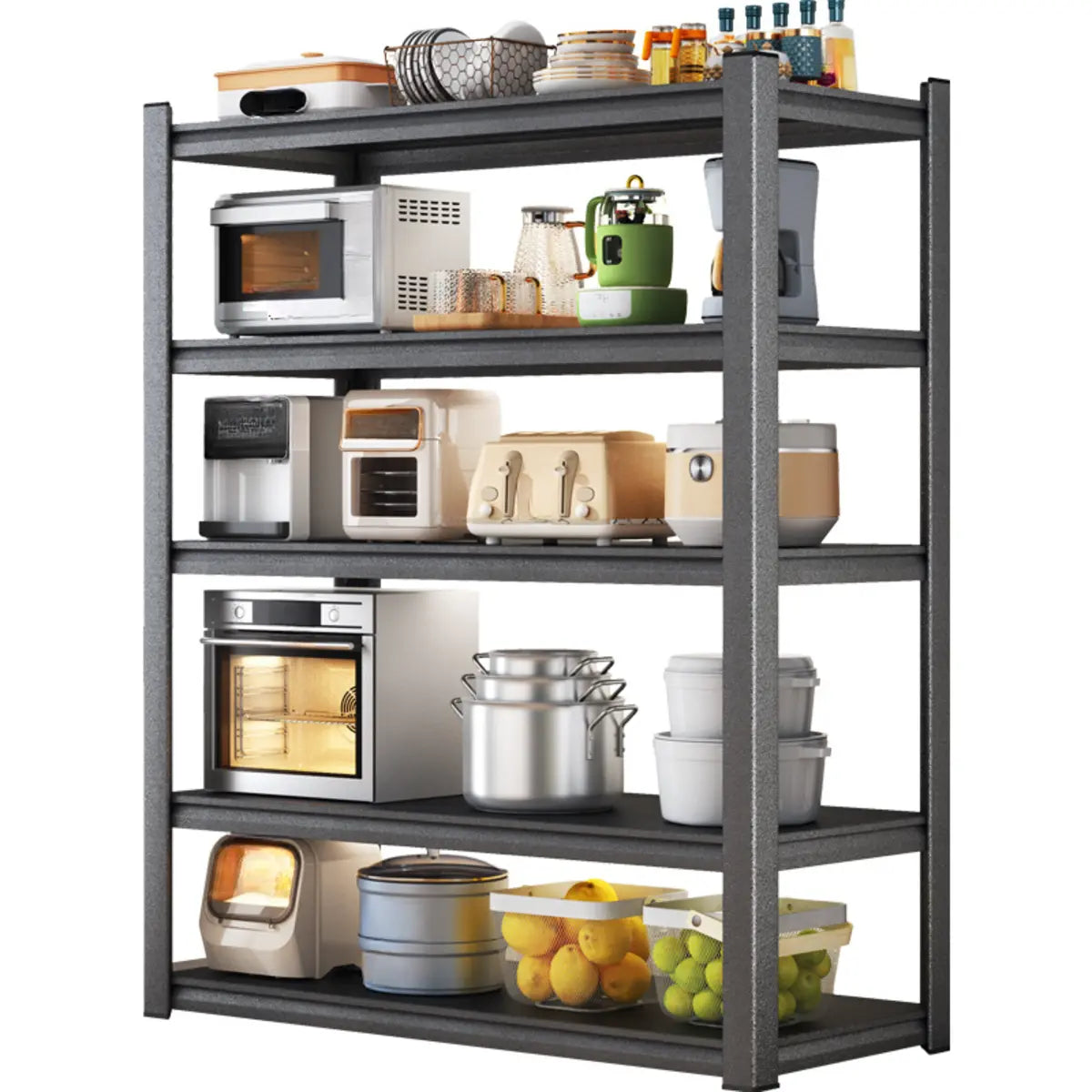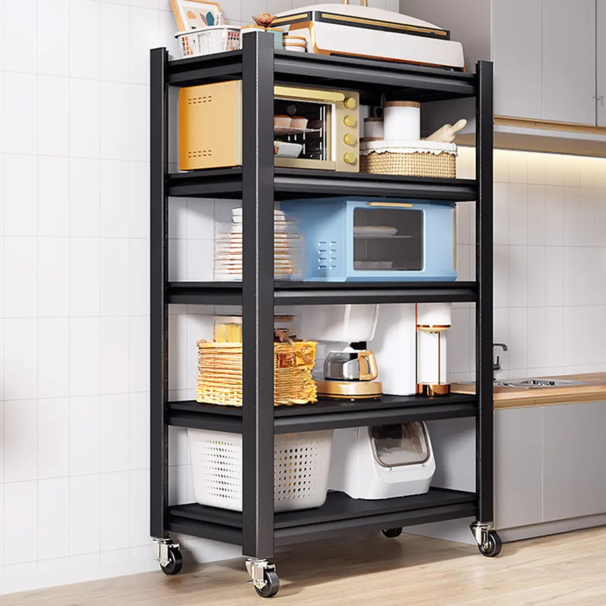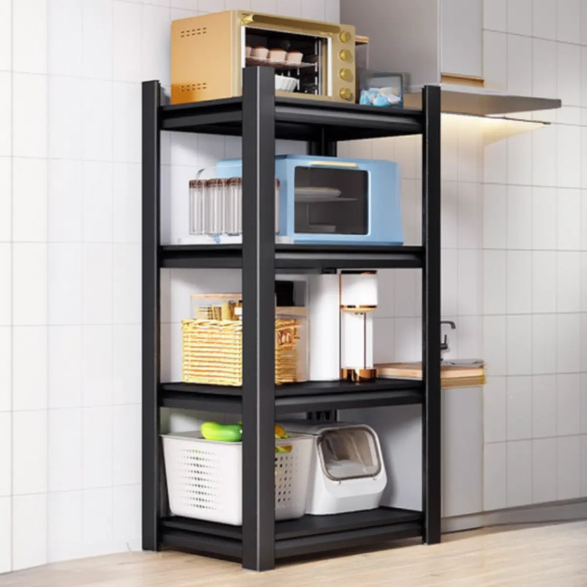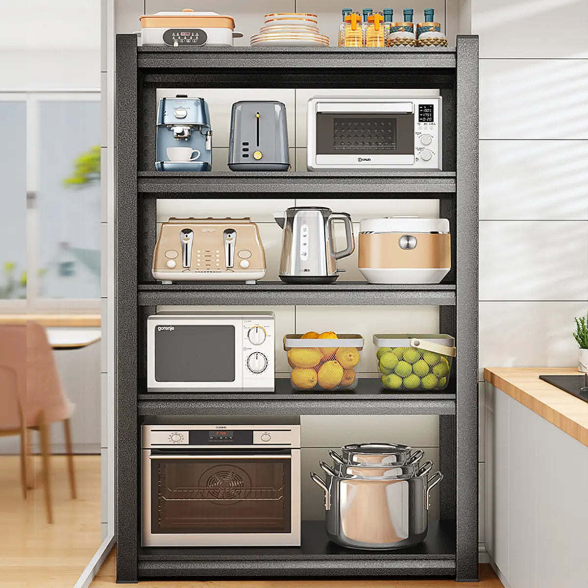 This modern black metal shelf is the perfect solution to your kitchen storage needs, where style and function go hand in hand. Its multi-tiered system offers ample storage space and keeps your grocery and kitchen appliances organized, in addition to presenting your kitchen as cleaner and tidier. Made from the highest-quality metal, this shelf has better stability and longevity and is able to endure the storage requirements of heavy loads. Its classic black appearance adapts to various home styles and integrates seamlessly into your home decoration.