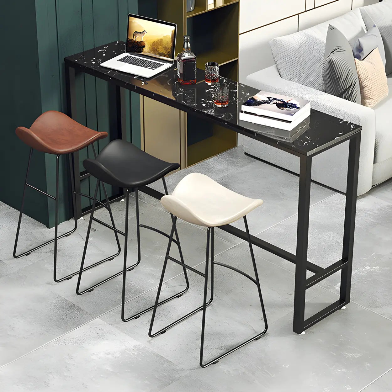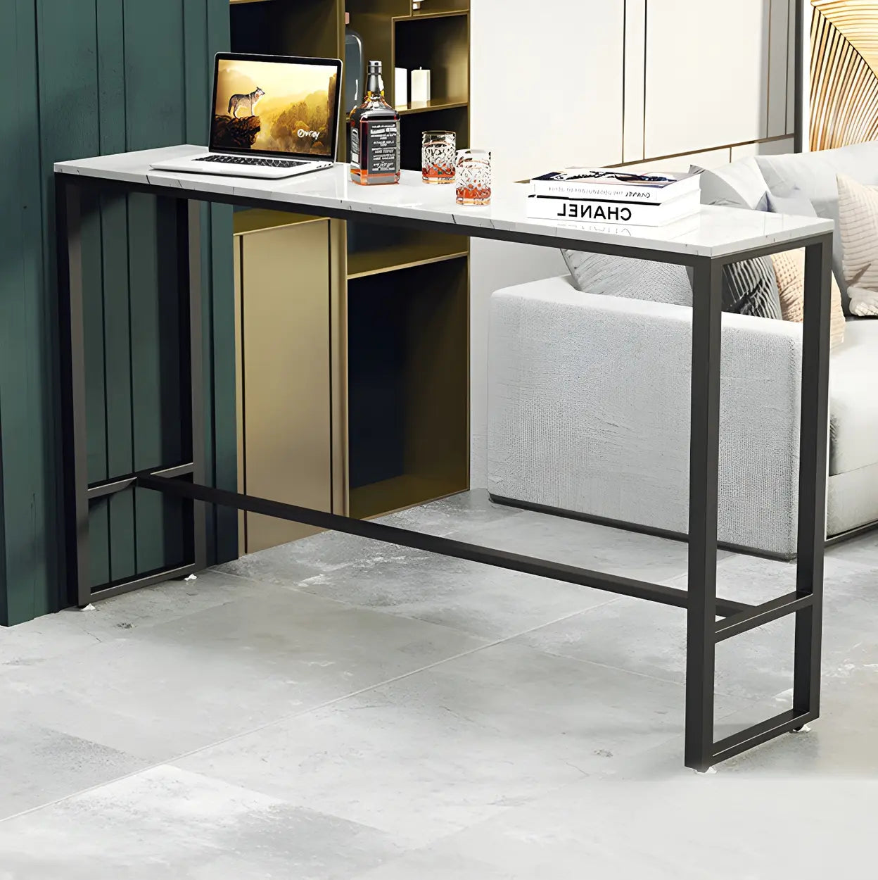 This black rectangular marble high table is the perfect complement to your home space with its modern and simple design and high-quality materials. The tabletop is made of high-quality marble and combined with a black metal frame, showing a perfect combination of elegance and solidity. It is not only outstanding in texture but also extremely durable.