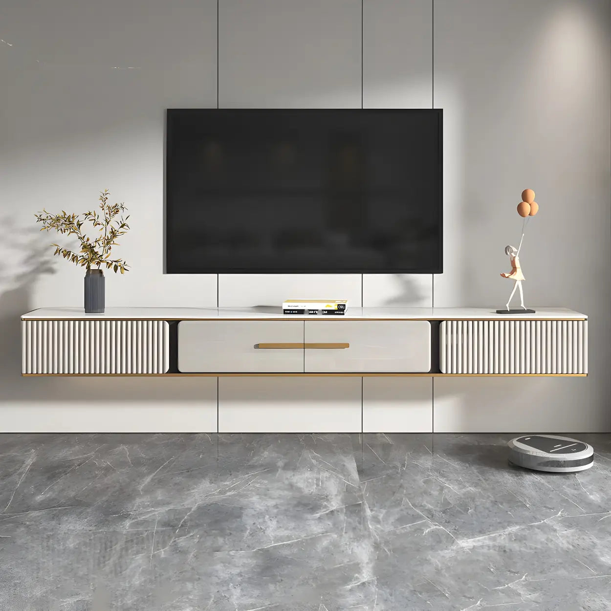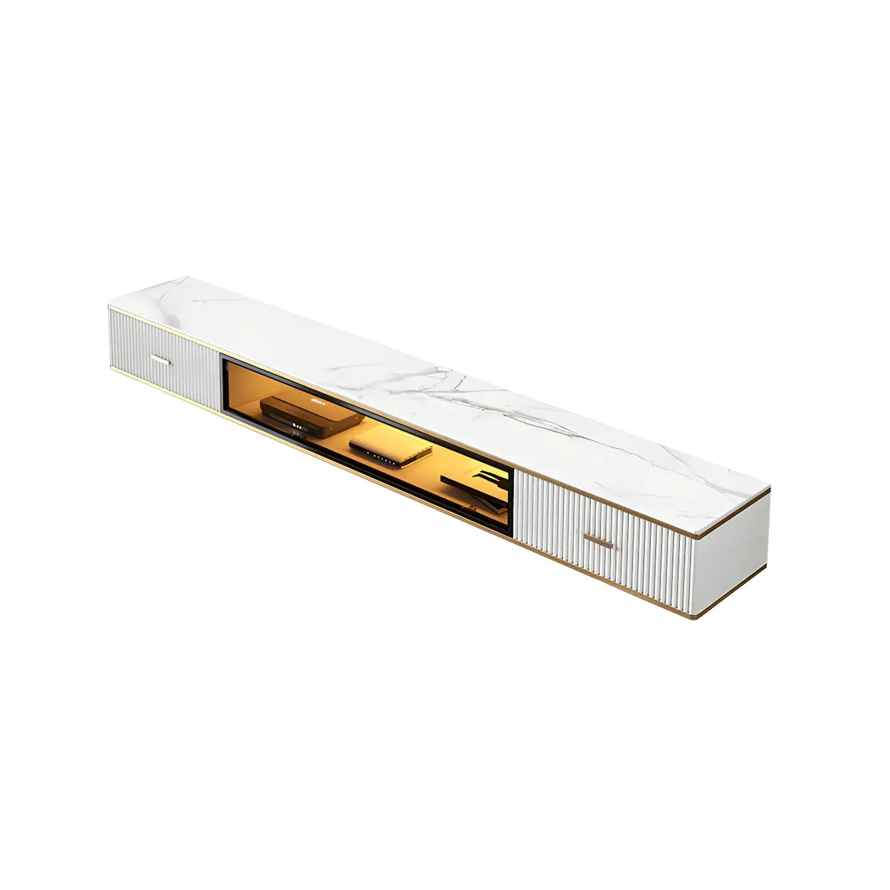 Black Stone Floating Mount Drawers Shelves TV Stand