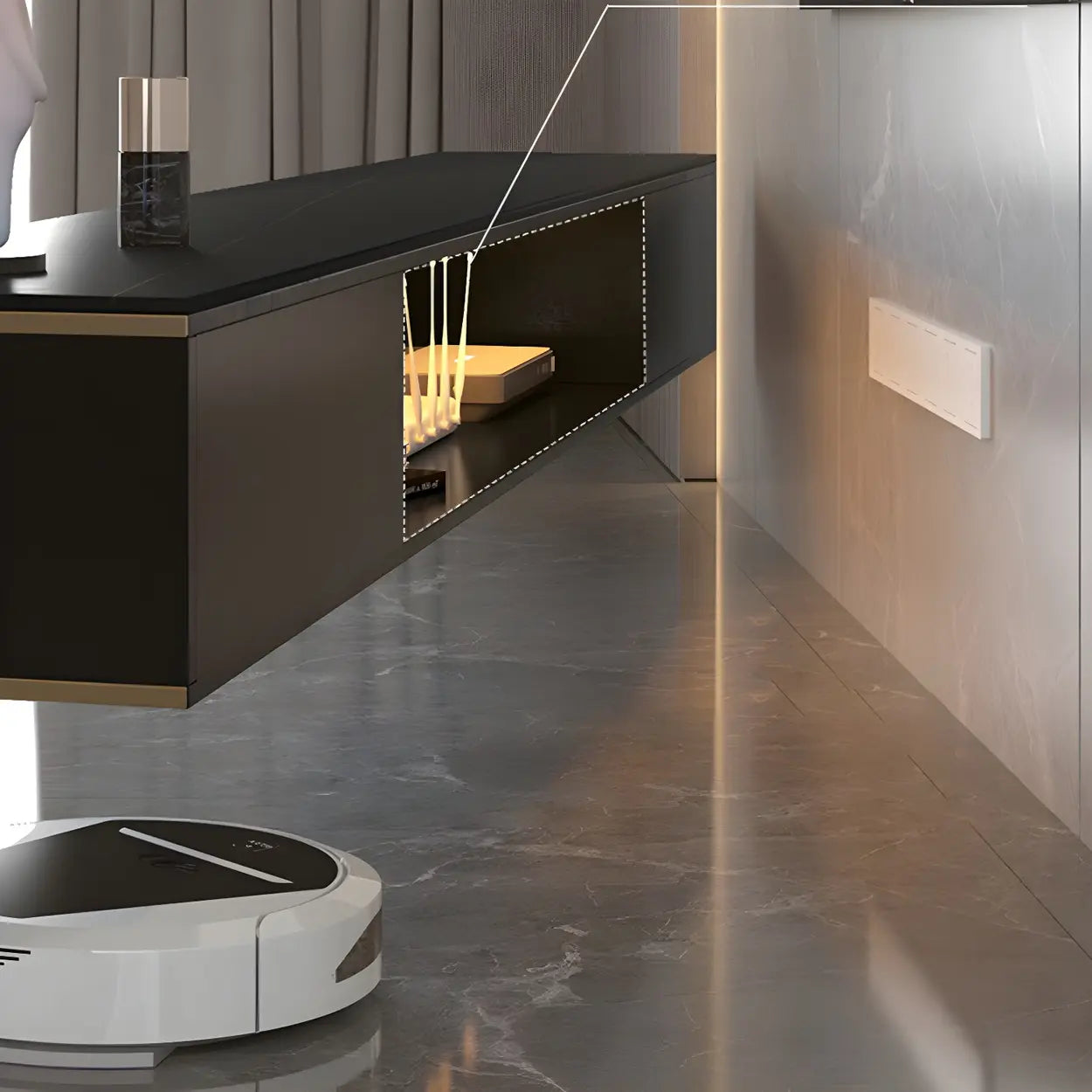 This black TV cabinet perfectly integrates beautiful design and practical functions into your home space. It has a stone texture that makes the interior decoration more upscale. The wall-mounted design maximizes space utilization while adding a modern touch to your living room. Fitted with LED lighting, it creates an attractive display environment for your audio and video equipment, which not only effectively saves space but also boosts the viewing experience.
