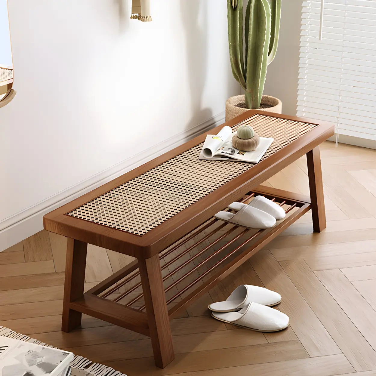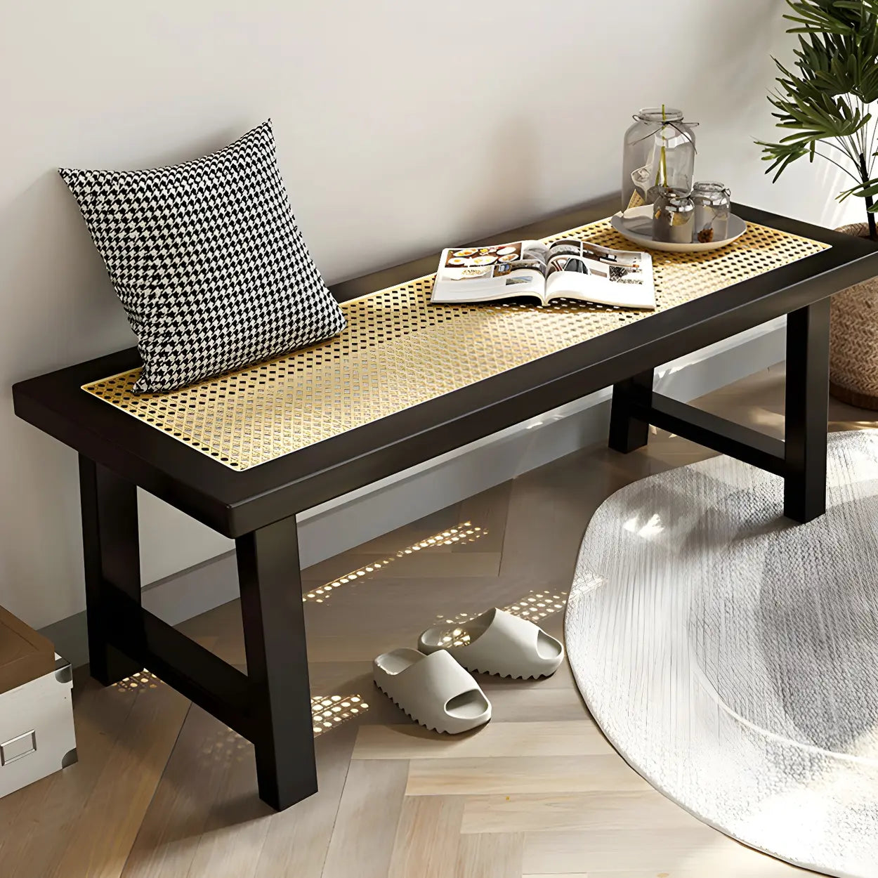 This tropical-style bench combines elegance and practicality for any home. Made from high-quality wood and metal, it provides sturdy and durable support. Whether it is placed in the hallway or used as a bedroom seat, it can add a modern touch to your living space. Its classic black finish is easy to match with various decoration styles, making your home more layered.