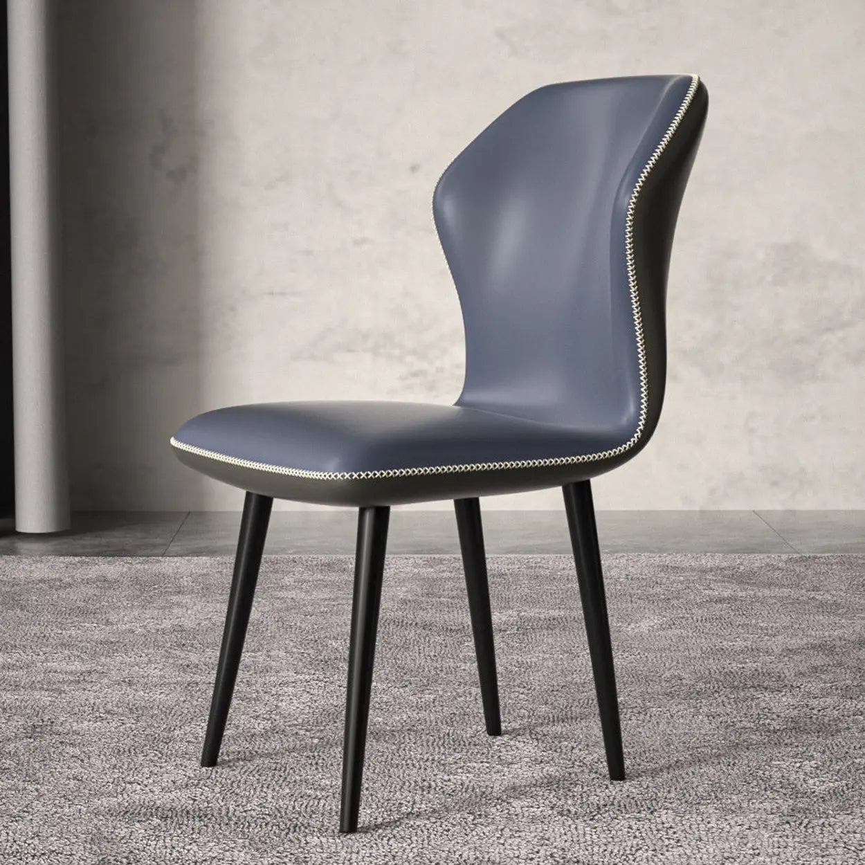 Blue-Brown Wingback Leather Upholstered Dining Chair