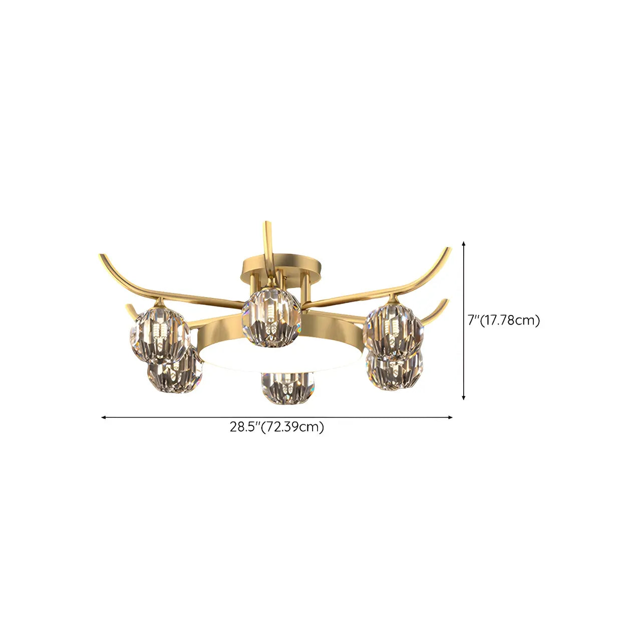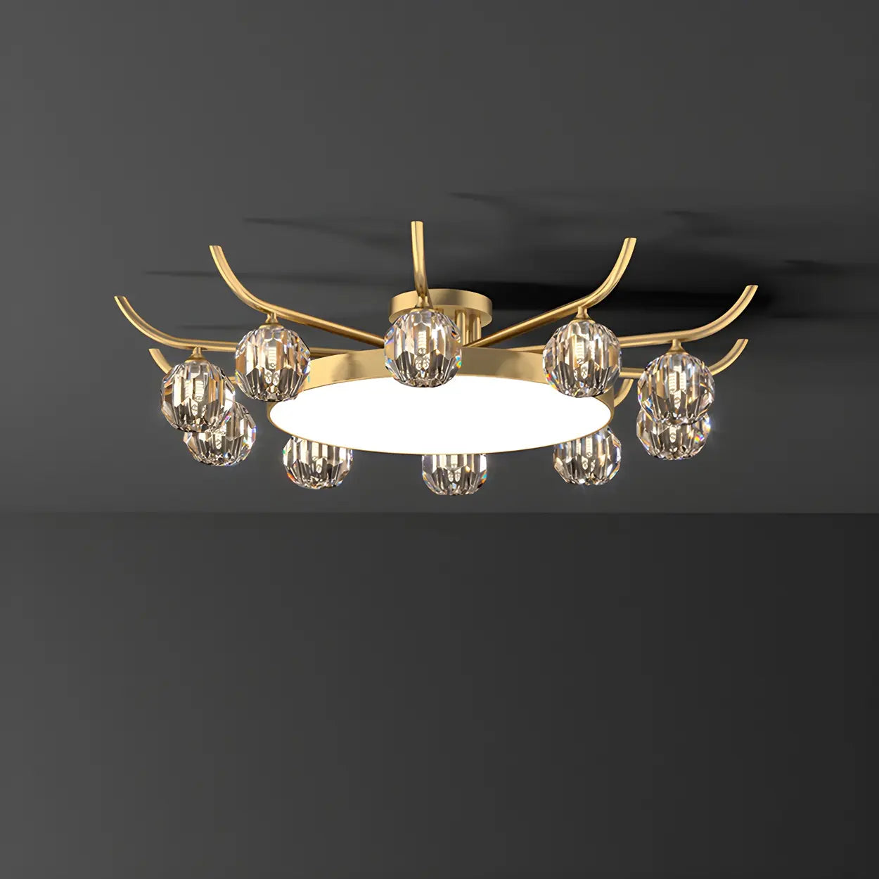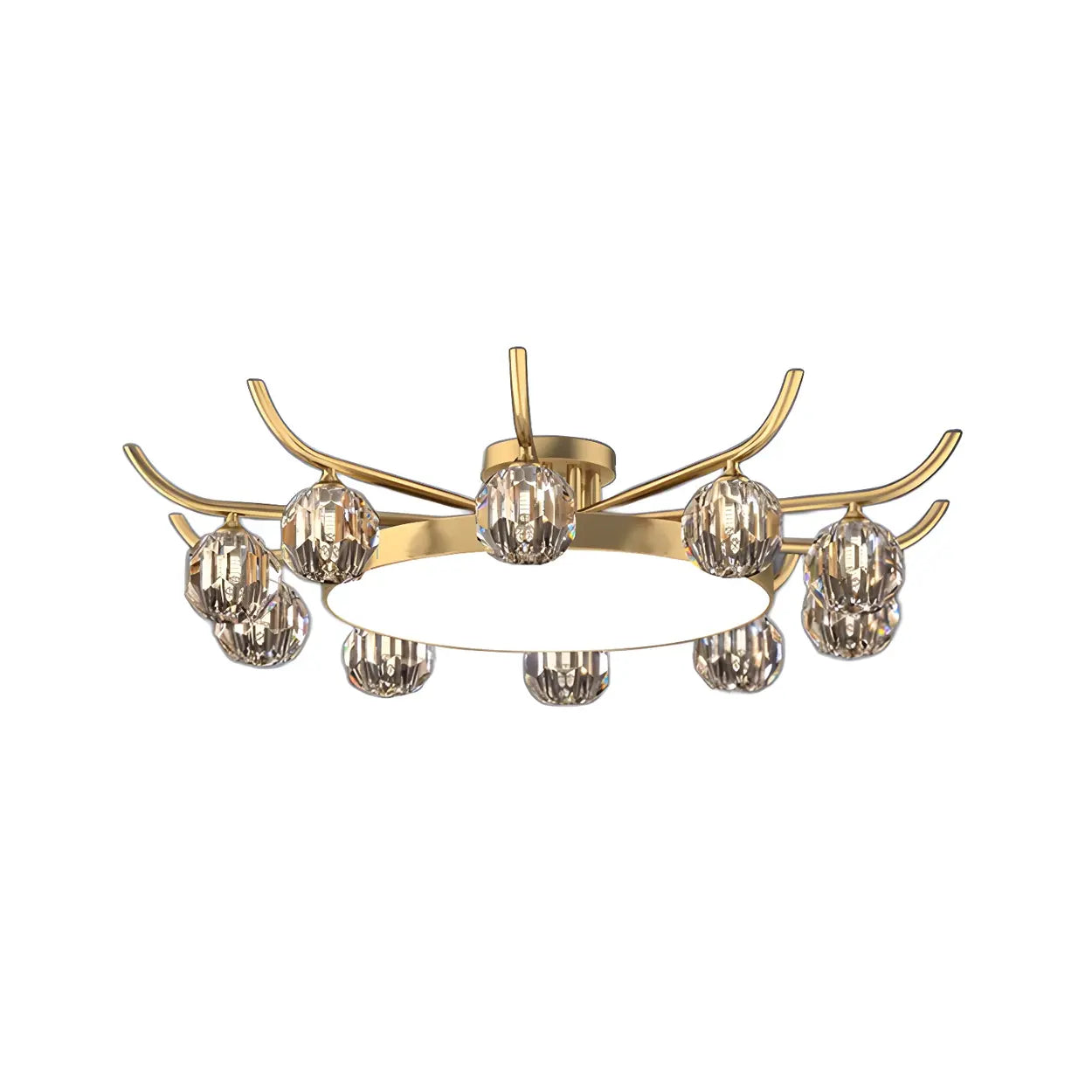 Brass Multi Ball Crystal Semi-Flush Mount Lamp 13-Lamp