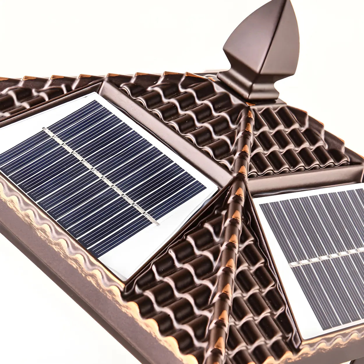 This solar garden lamp is classic and elegant, improving a touch of elegance to your outdoor space. The refined bronze finish and modern solar technology combine perfectly, enhancing the decorative effect while also being green and energy-conserving. The light is built from fine materials to ensure durability and long life. Whether in a garden, patio, or trail, it can easily blend into any environment and become the finishing touch of your outdoor space.