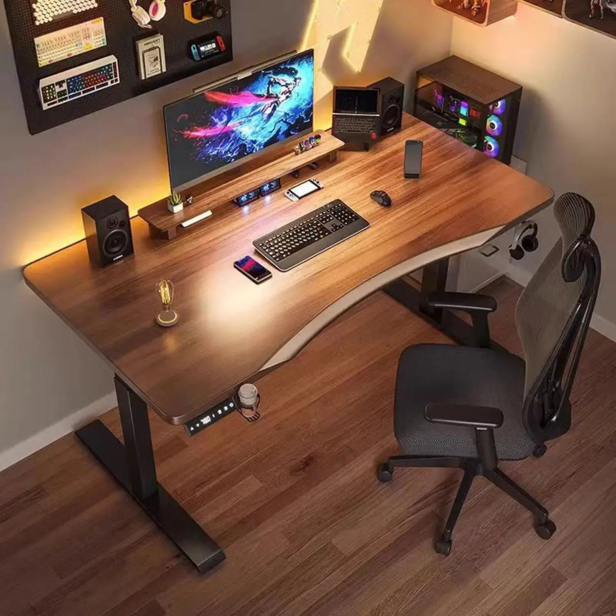 This electric height adjustable desk merges stylish technology with a superior layout for any home or office. Its curved shape is not only ergonomic but also sweetens the aesthetics of the area. The exceptional walnut wood is not only enduring but also adds a hint of luxury to any work backdrop.