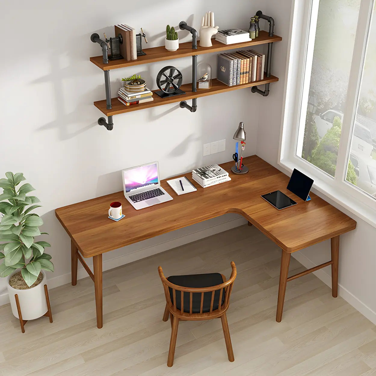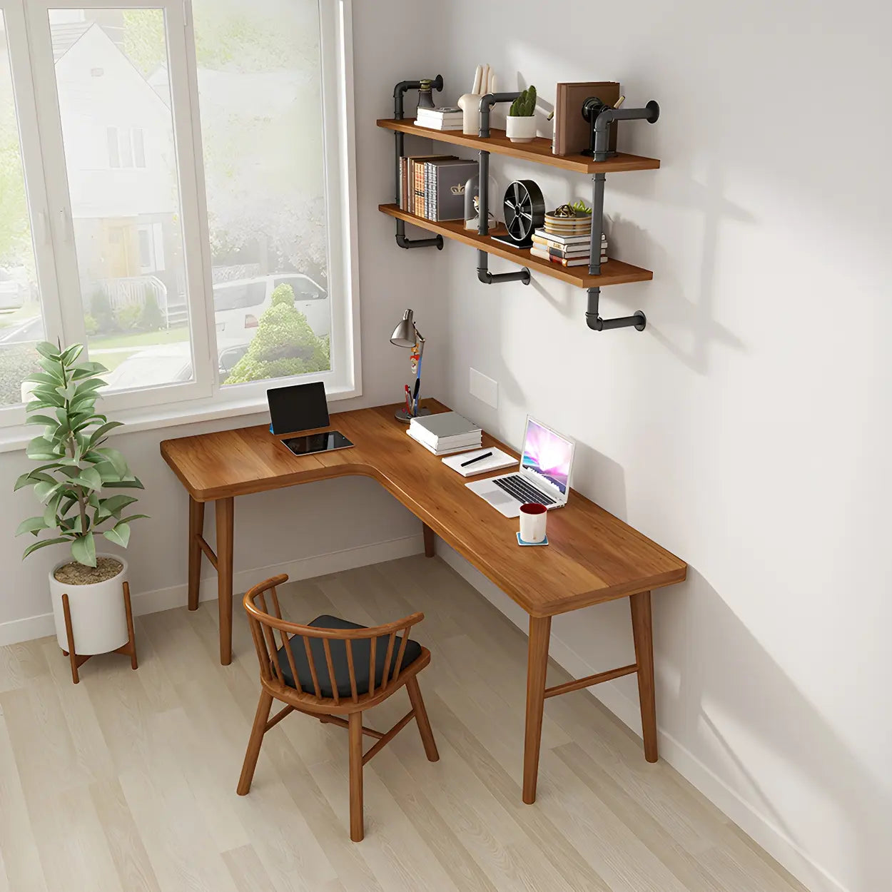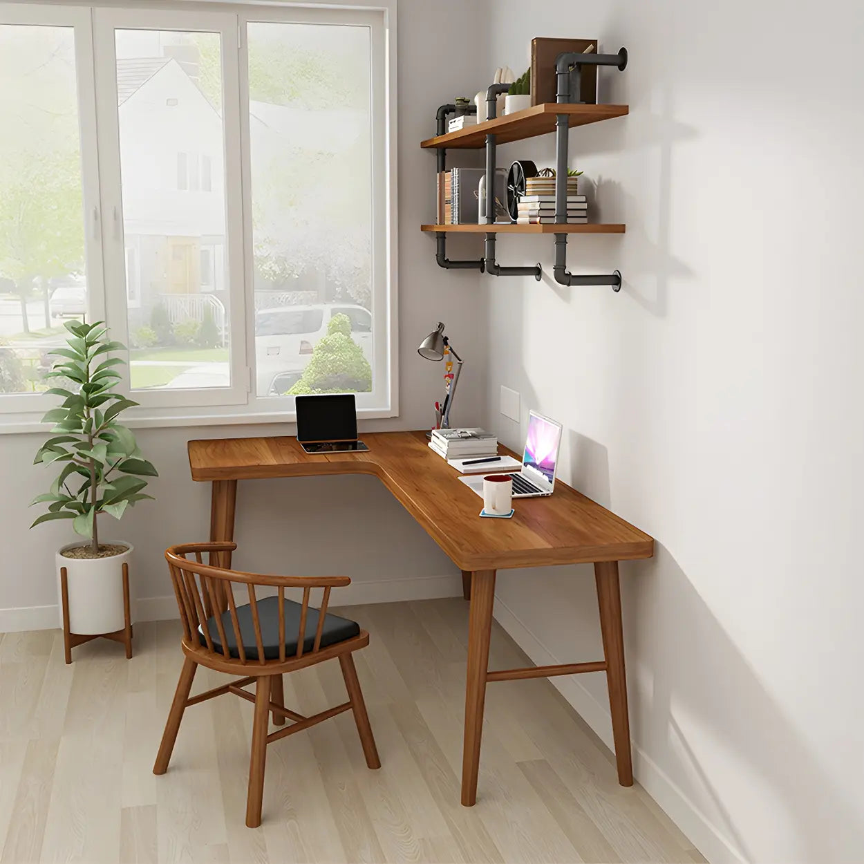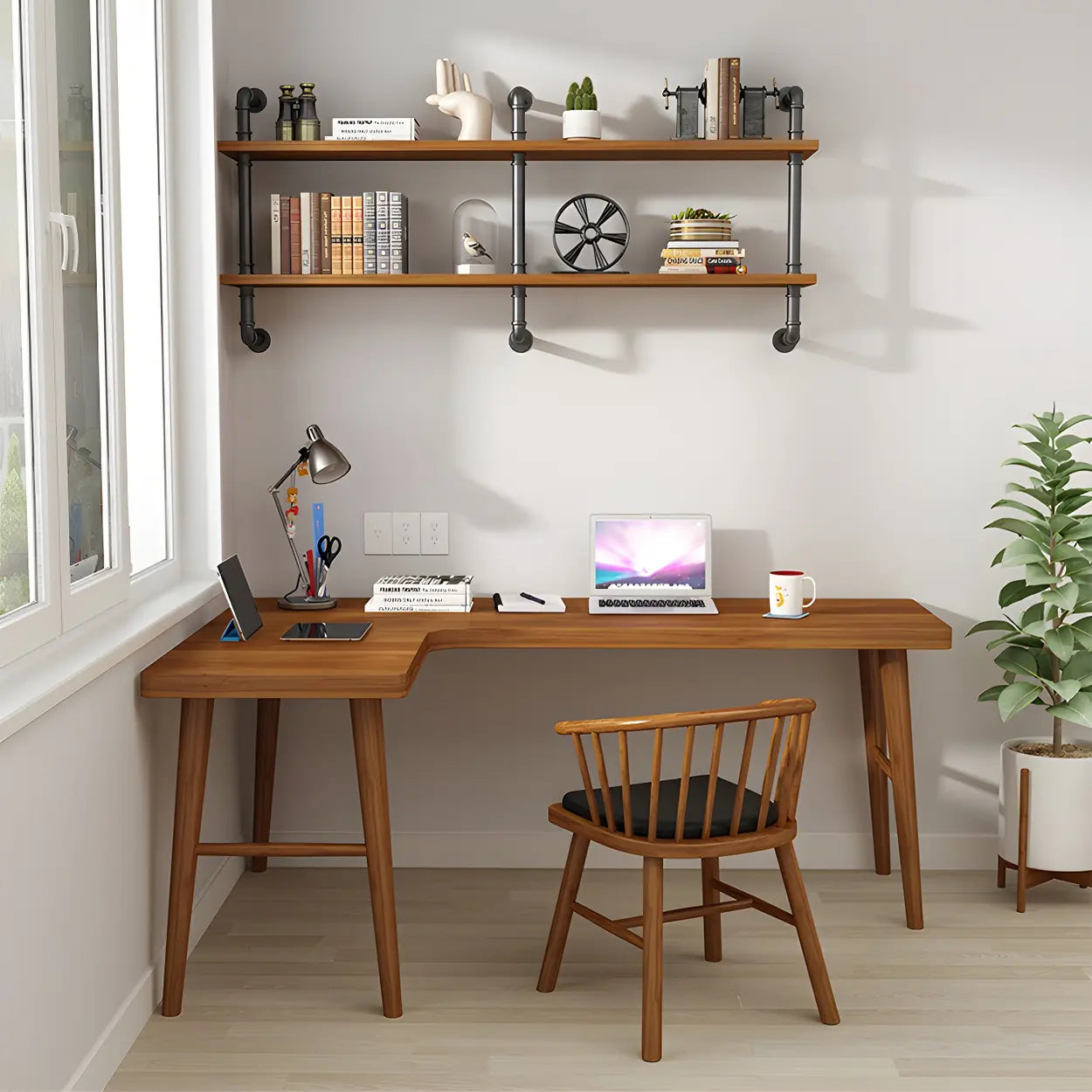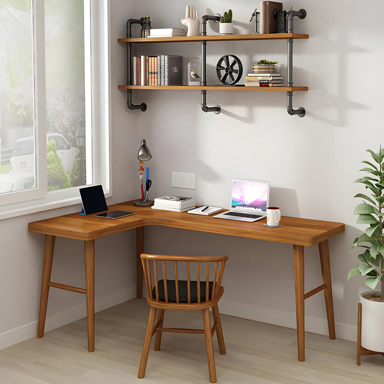 With clean design combined with high-grade materials, this L-shaped solid wood office desk with industrial design is an ideal addition to your office, offering an open desktop that provides enough space for multitasking functions and is suited for one person.