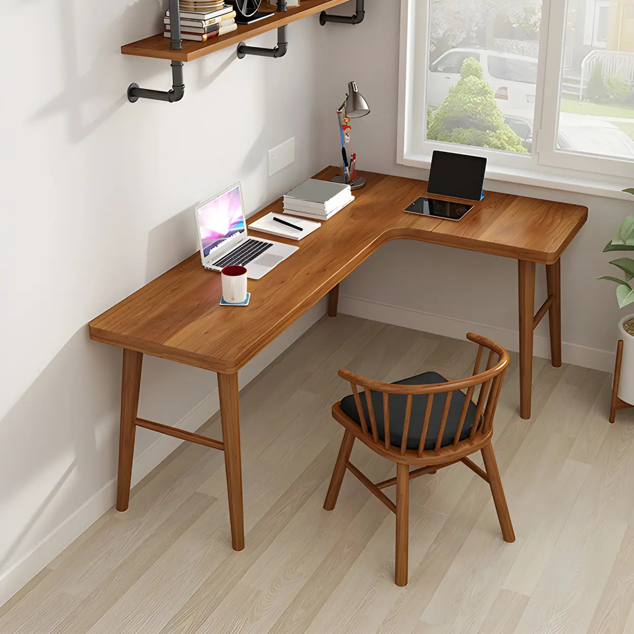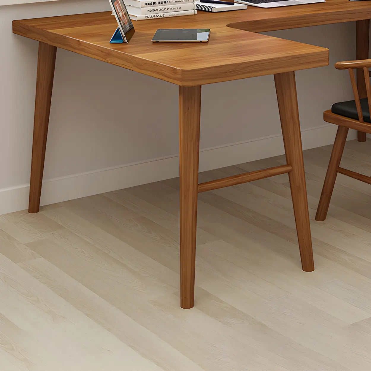 Brown L-Shape Pine Wood H-Shaped Base Writing Desk